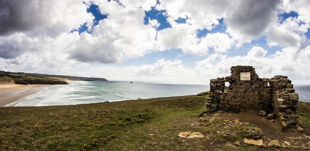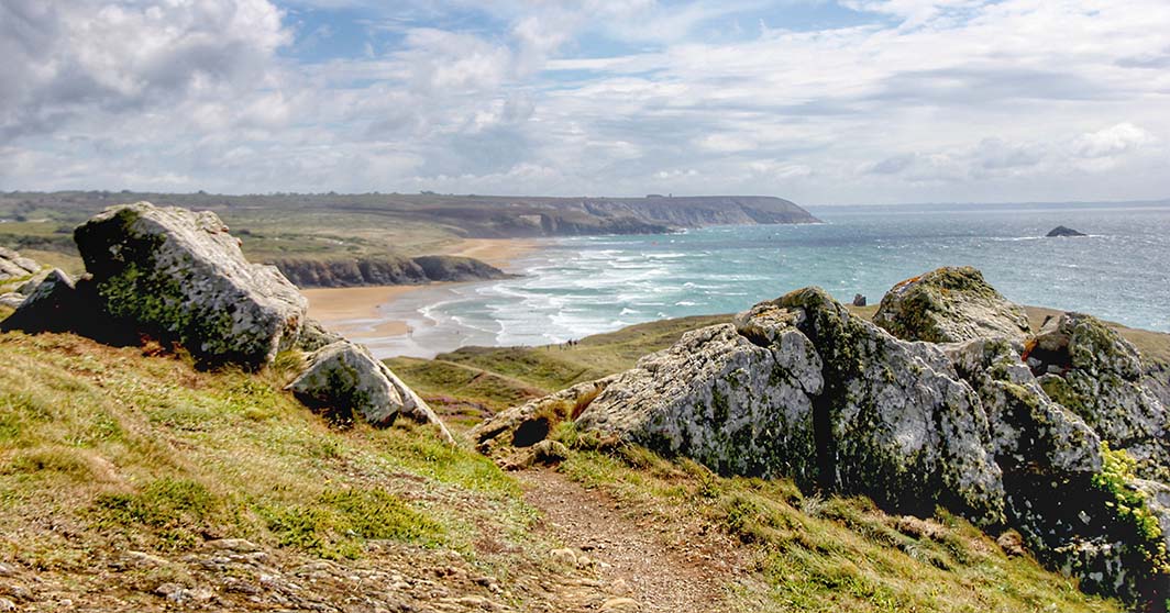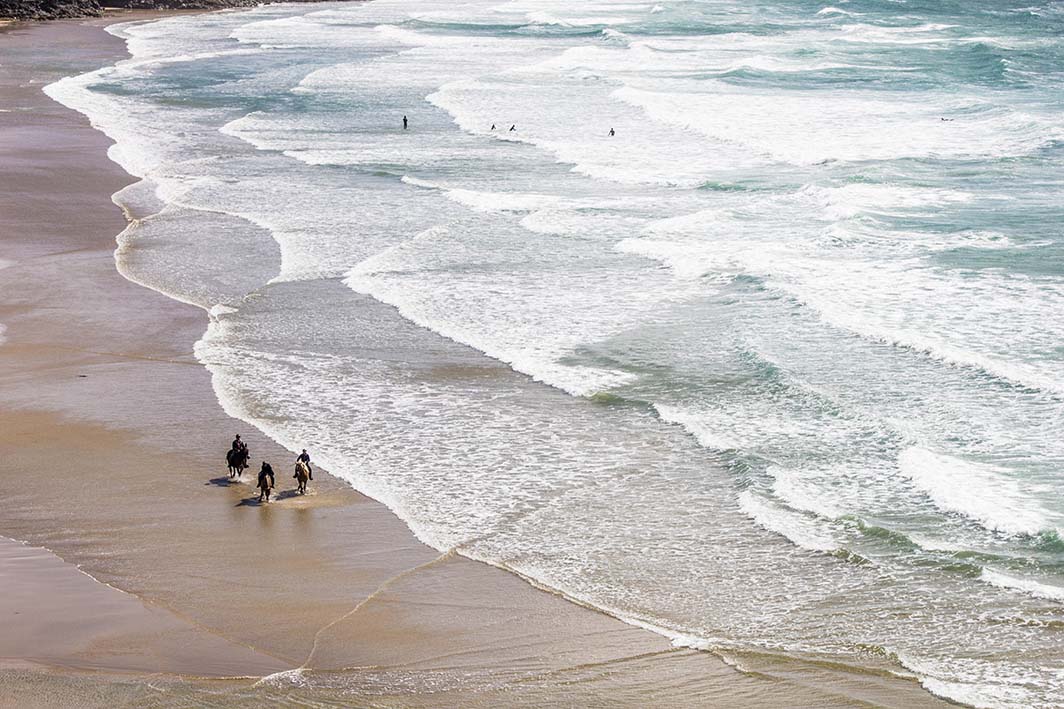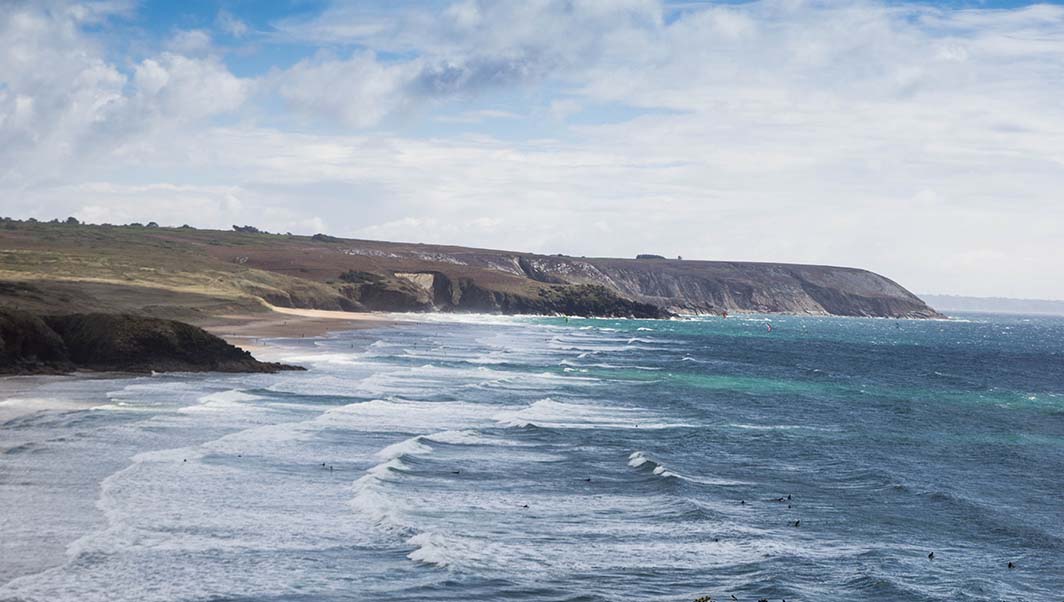 A gauche, la plage de Lostmarc’h avec ce jour-là, des cavaliers en balade.