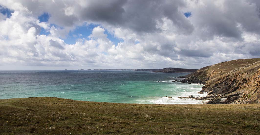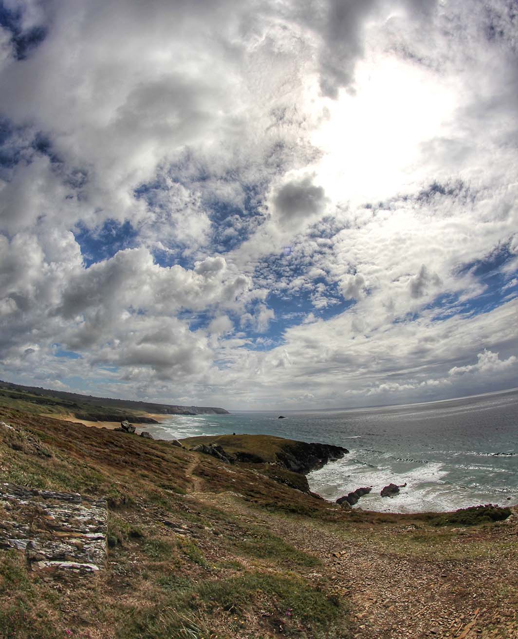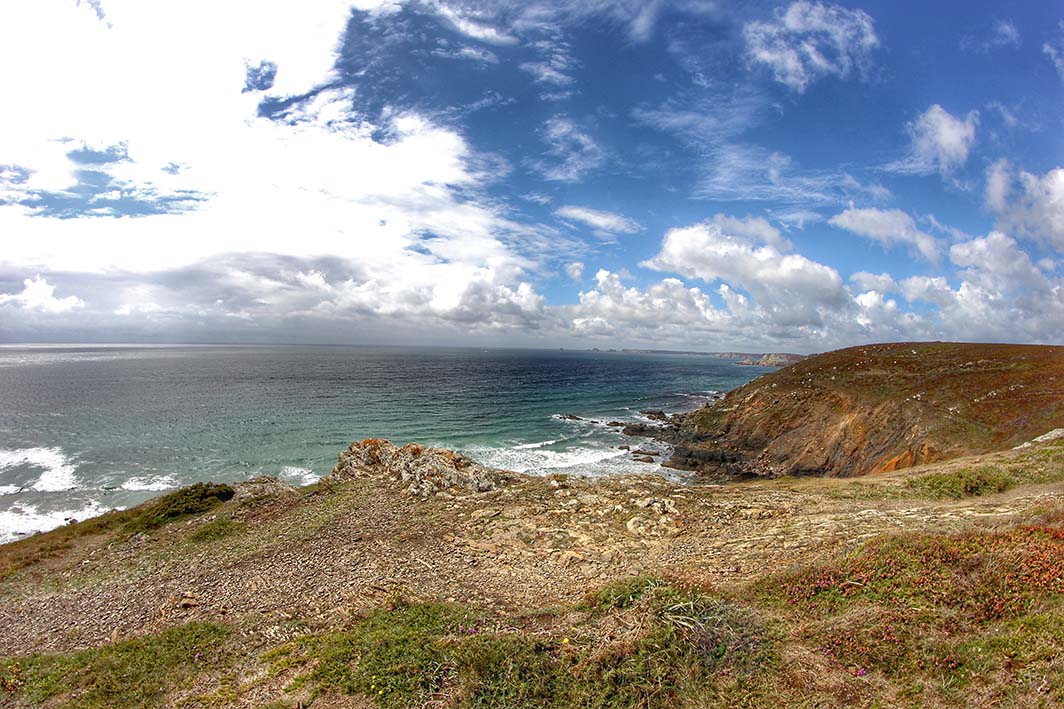Ca souffle au niveau de l’éperon ! On a eu un temps typiquement breton ce jour-là, avec un ciel très changeant, passant du gris menaçant au bleu en l’espace de quelques minutes…Allez, on rentre !