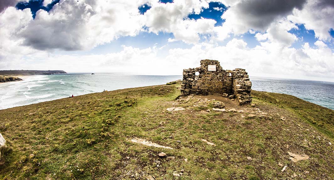 La construction que vous voyez ici est en fait ce qu’il reste d’un ancien abri de douanier du 17ème siècle mais dès 500 avant J.C, l’éperon servait de refuge à des populations Celtes.
