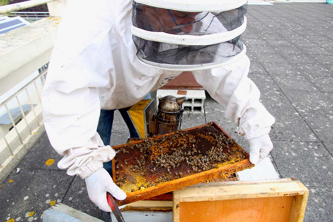 C’est vrai qu’on est un peu inquiets pour les abeilles en ce moment donc c’est chouette de savoir qu’on a des ruches qui vont plutôt bien juste au-dessus de nos têtes !