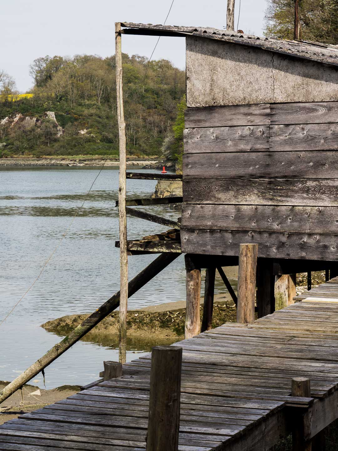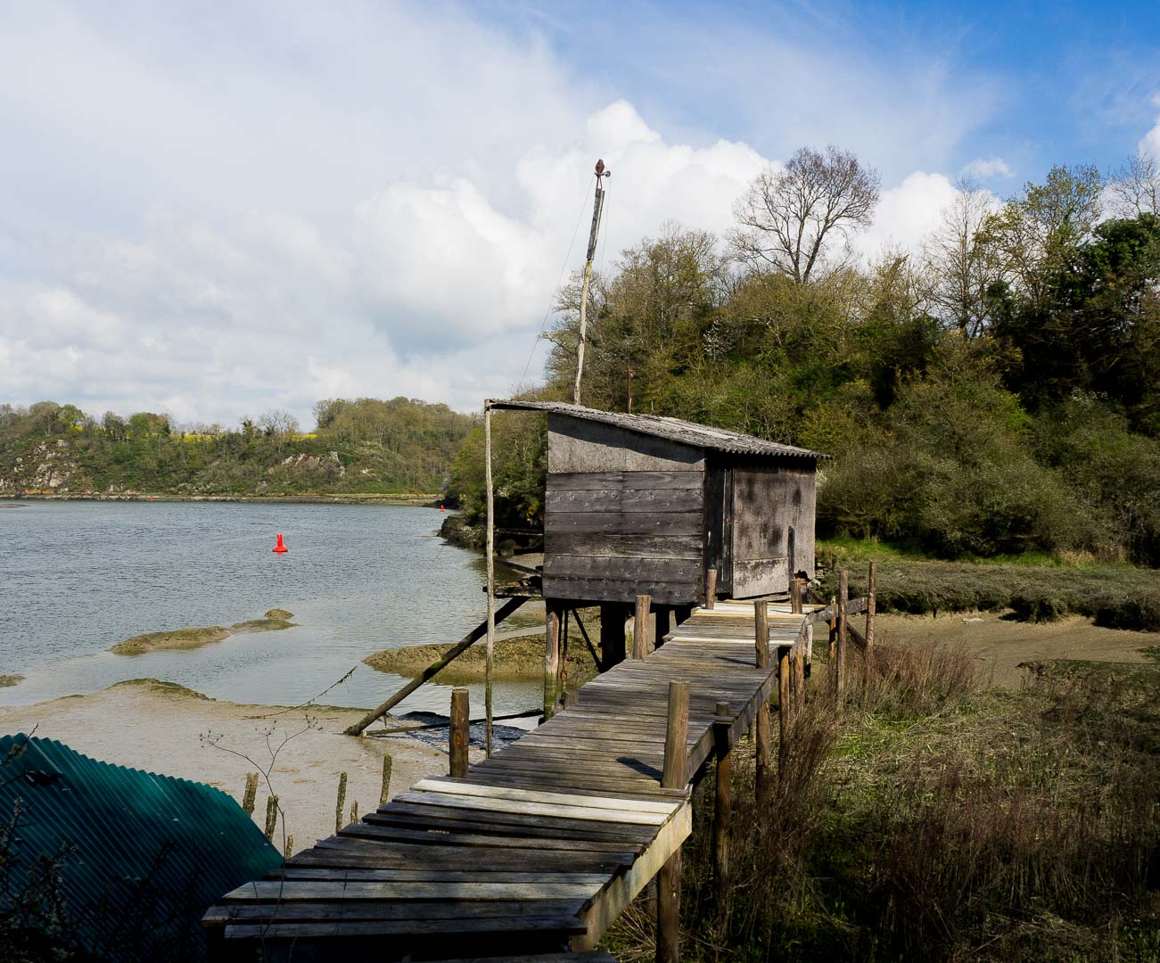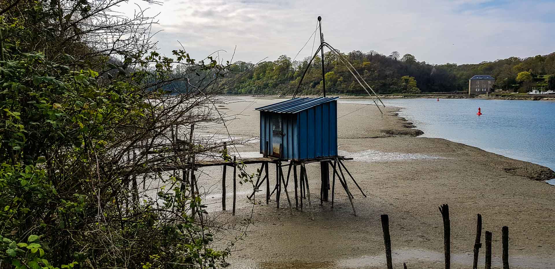 Vous vous souvenez peut-être que je vous avais promis de vous montrer d’autres cabanes à carrelets ? Lors de ma balade à Saint-Samson-sur-Rance, un promeneur m’avait indiqué un autre coin à cabanes, à La Vicomté-sur-Rance cette fois. J’ai eu un peu de mal à les trouver car je savais seulement qu’elles se trouvaient à Morgrève, et ça, Google Maps ne connaît pas. C’est par hasard que j’ai repéré un “chemin de Morgrève” sur la carte, chemin très prisé par les randonneurs si j’en crois le nombre de personnes croisées à cet endroit !