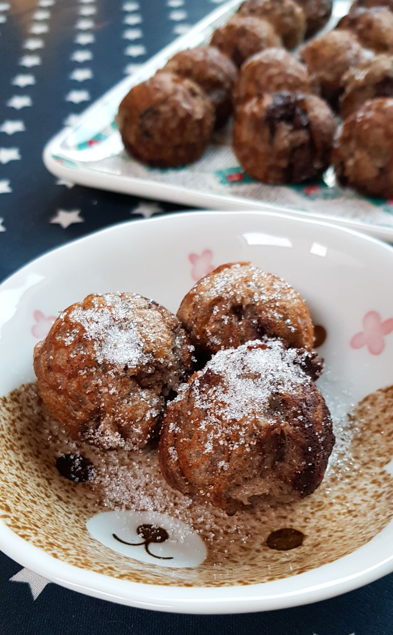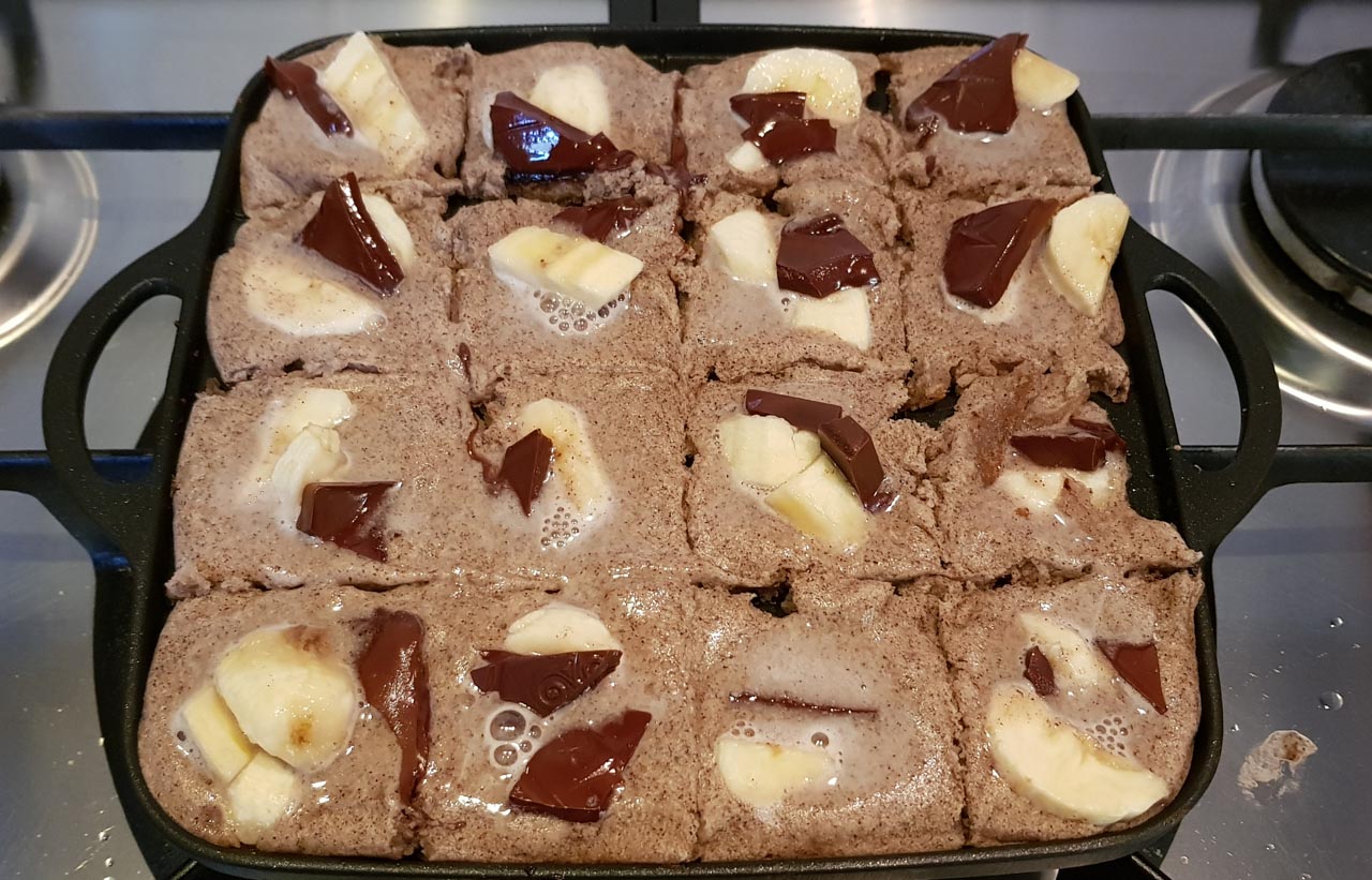 Ajouter dans chaque trou une 1/2 rondelle de banane et un morceau de chocolat. Vous pouvez bien sûr varier les garnitures.