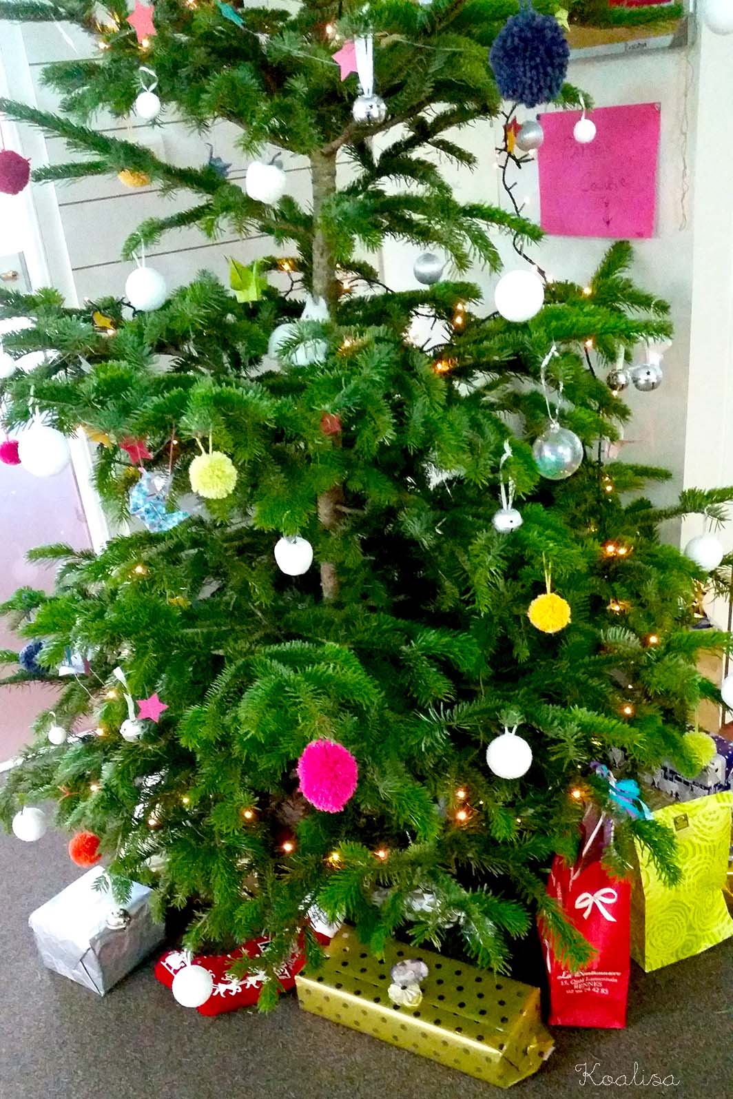 PS : la poulette est fan du sapin avec les boules pompoms ^^