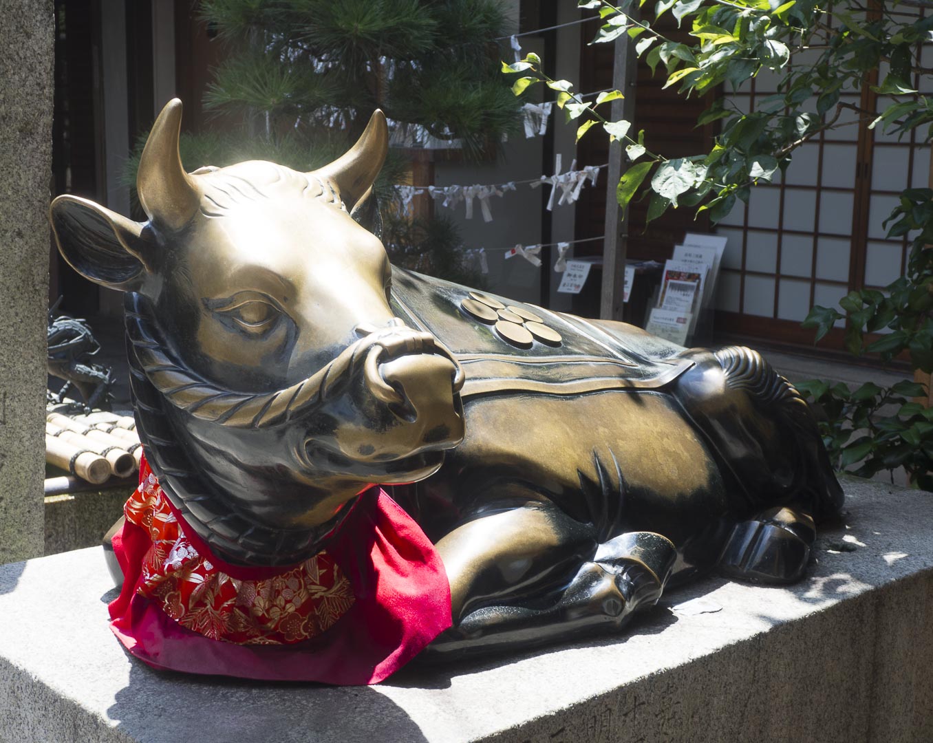 Une fois passé le portail, il ne faudra pas oublier de caresser la tête de la statue du taureau située à droite après l’entrée. si on touche sa propre tête juste après, cela porte chance… D’ailleurs, les boutiques situées juste à côté du temple paient pour que leur nom figure sur certaines des lanternes du temple, ce qui, paraît-il, leur assure de faire fortune.