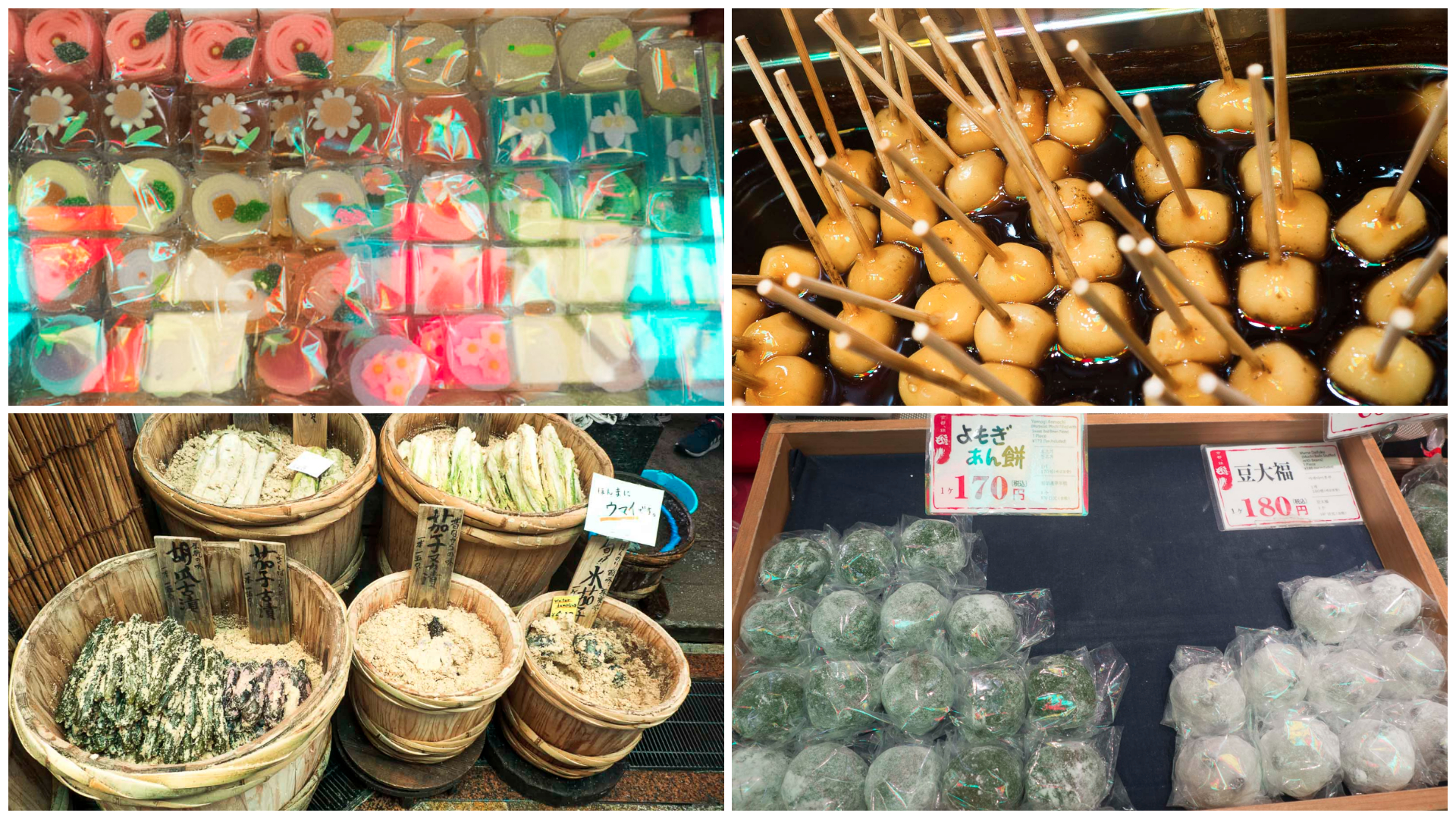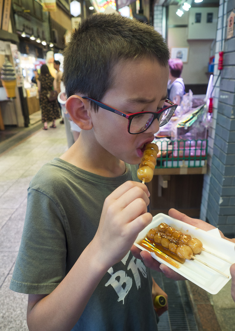 On peut aussi se laisser tenter par des pâtisseries (dango et mochi notamment), du thé et des épices. Canaillou a adoré les dango, ces boulettes de pâte de riz gluant trempées dans une sauce sucrée au soja. On lui en a acheté presque tous les jours pendant notre séjour au Japon !