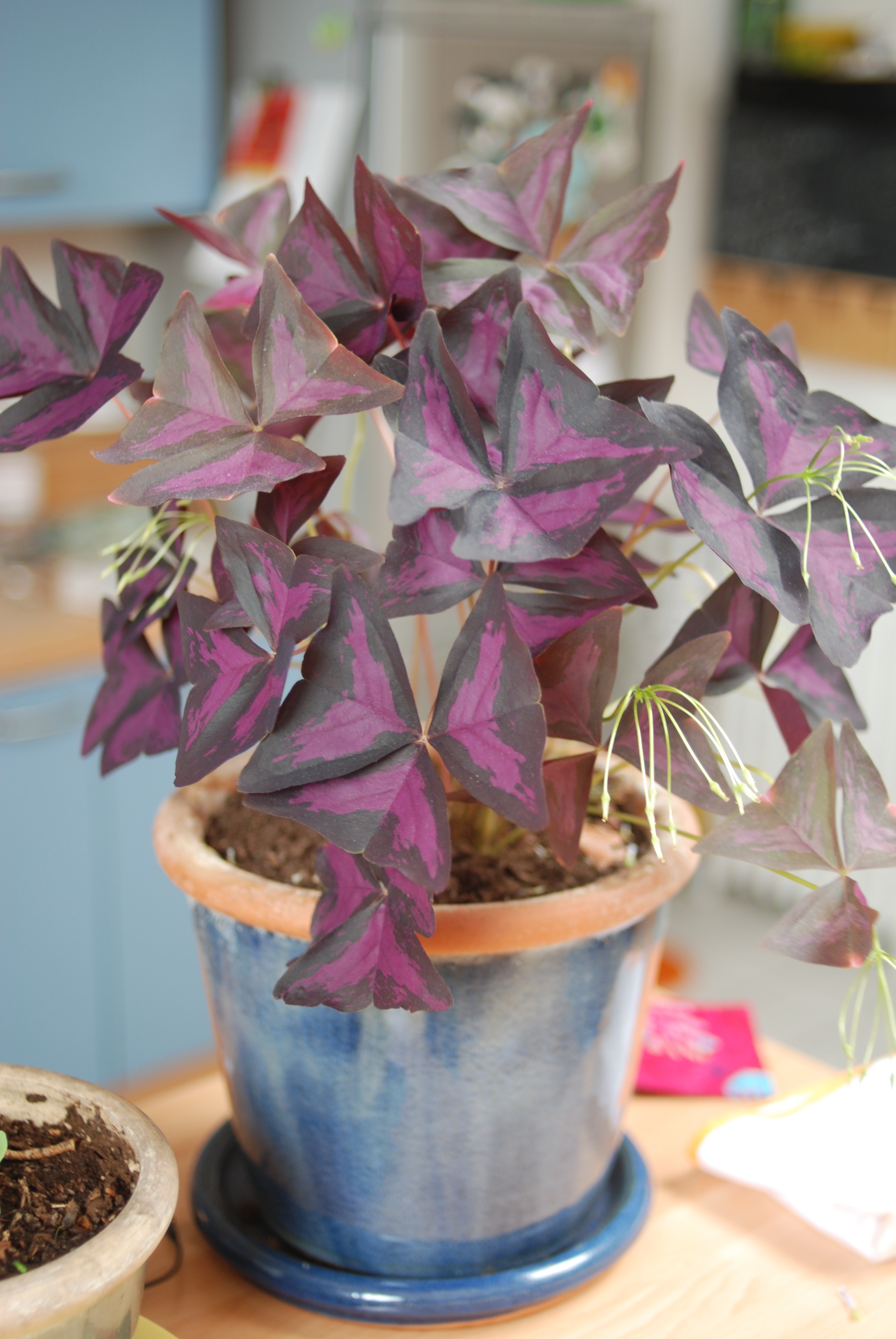 J’adore voir les plantes pousser, j’ai une patate douce chez moi qui a germé l’année passée et les petites feuilles tout à leur début rappellent ton Oxalis mais en mini et puis elles deviennent vertes (http://purenrgy.com/vive-le-printemps/)