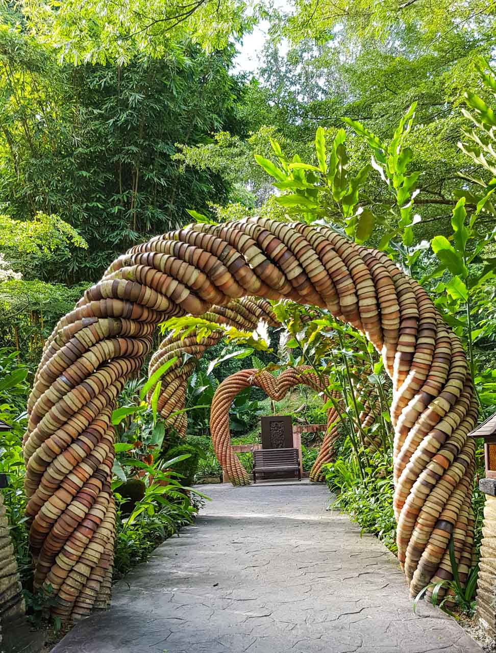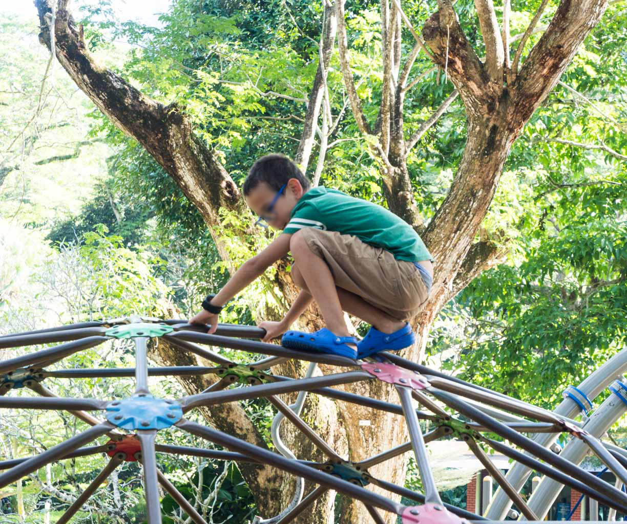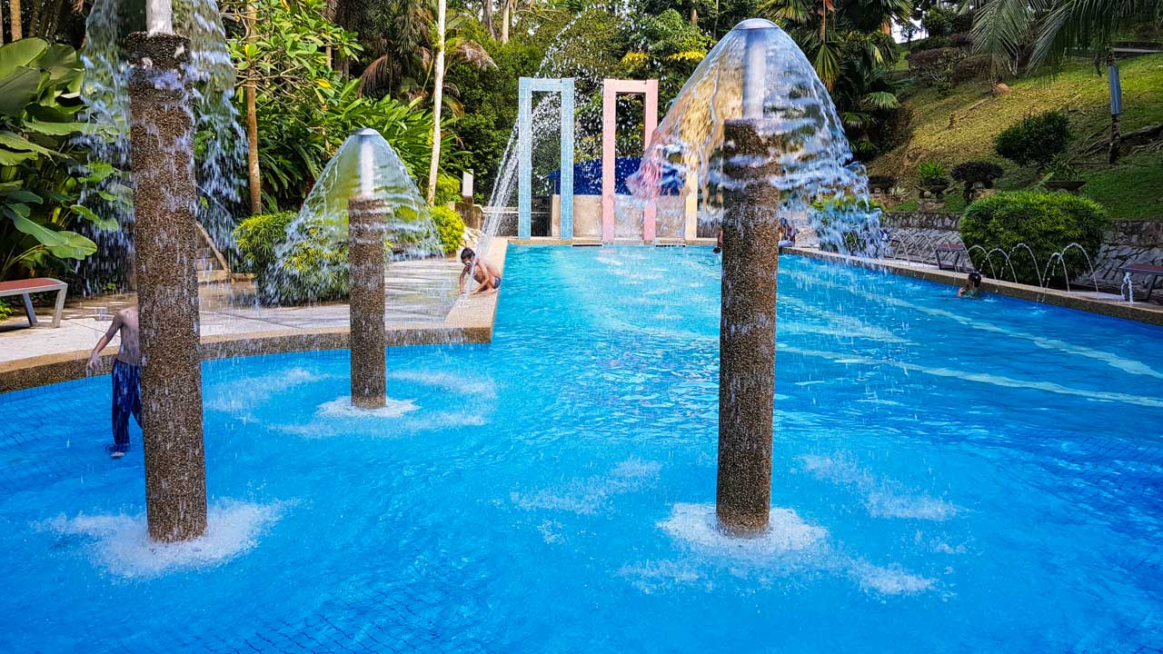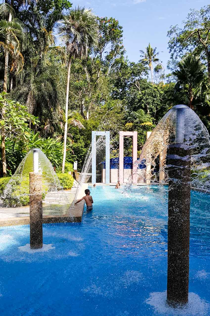 Parfois, en voyage, on voit des endroits qu’on n’avait pas du tout prévu de visiter, ça vous est déjà arrivé ? A Penang, nous nous sommes ainsi arrêtés dans au parc municipal car ce dernier était doté d’une pataugeoire pour les enfants. De plus, une des activités préférées de Canaillou, où qu’il soit, est d’aller au parc (par tous les temps et en toute saison !). Comme il avait visité environ cinq temples sans se plaindre, on lui a fait plaisir et nous avons pris la direction du parc. Première impression : la végétation est vraiment exotique !