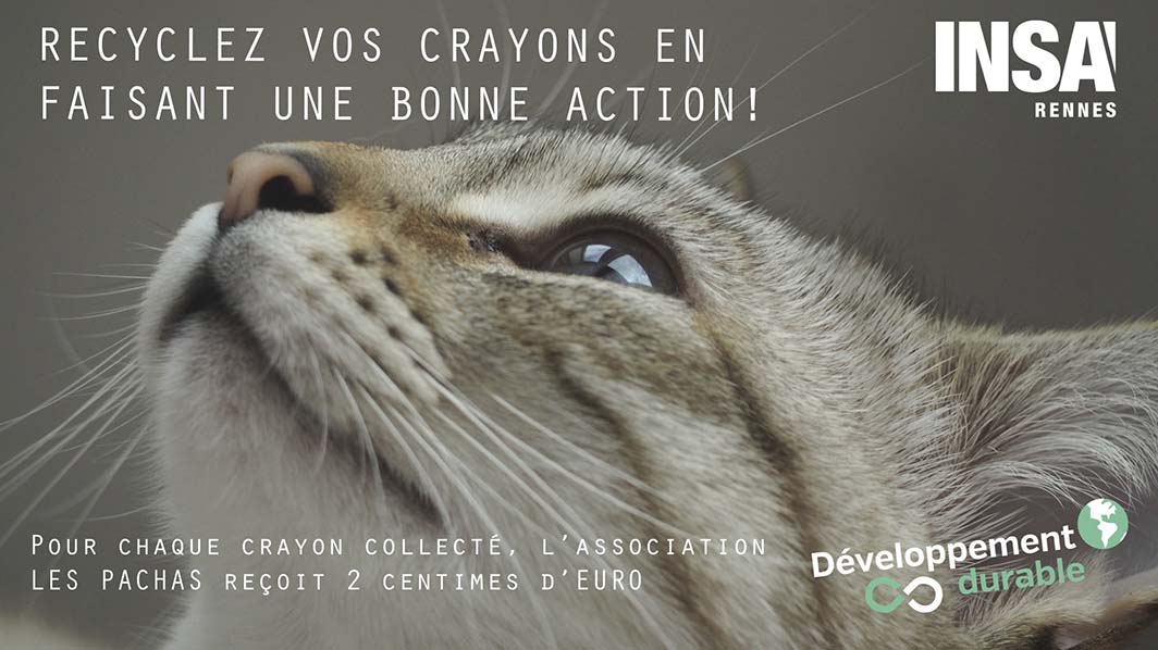 – collecter les crayons usagés sur mon lieu de travail. Pour chaque crayon collecté, 2 centimes d’euro sont reversés à l’association de protection féline Les Pachas. C’est Lyanna sur l’affiche (oui, j’ai réussi à faire une affiche ! ). Elle fait un peu sa star depuis, d’ailleurs…