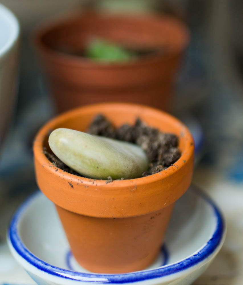 Par contre, j’en ai dans la cour ! Un (déjà) gros yucca issu d’une bouture « bâton » de celui d’une collègue il y a 2 ans, un romarin replanté l’an dernier (mais je me demande s’il a survécu correctement à l’hiver.. ), quelques bulbes en fin de floraison (jonquilles, muscaris, anémones et crocus qui se succèdent),… et j’ai ajouté 2 pieds de tomates cerises hier. J’en ai aussi profité pour faire des semis de roquette et basilic (je n’ai encore jamais réussi le basilic ! ), et pour mettre en terre 2 noyaux d’avocats que j’ai réussi à faire germer non pas dans un verre d’eau mais en les enfermant enroulés dans un sopalin humide dans une petite boîte hermétique… J’ai vérifié régulièrement l’humidité et changé une fois ou 2 le sopalin pour éviter les moisissures… A voir si ça reprend en terre ou pas !