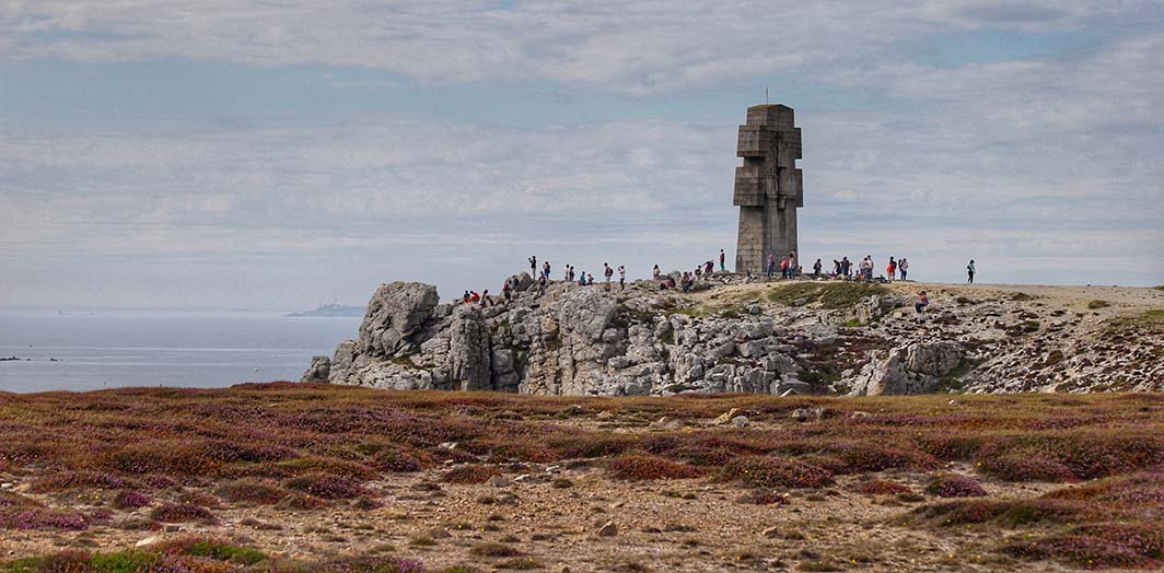 La pointe de Pen Hir (“longue pointe” en breton), se prolonge par les Tas de Pois, ces îlots qui faisaient autrefois partie de la falaise. Attention où vous mettez les pieds, il arrive que des touristes se blessent…Un monument de granit, la Croix de Pen Hir, a été érigé dans les années 60 en hommage aux bretons de la France libre.