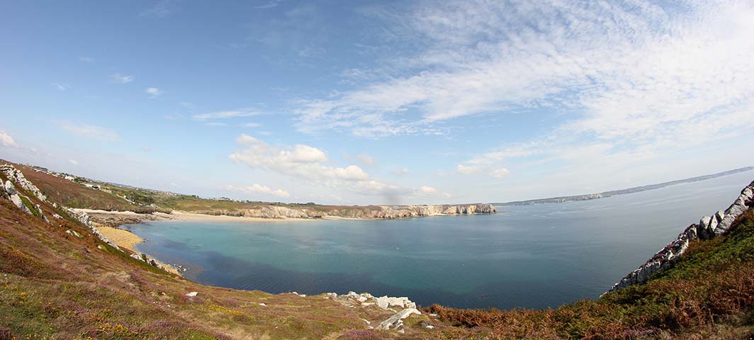 De l’autre côté de la pointe de Pen Hir, on aperçoit la pointe de Dinan ainsi que la plage du Veryac’h dont je vous parlais dernièrement.