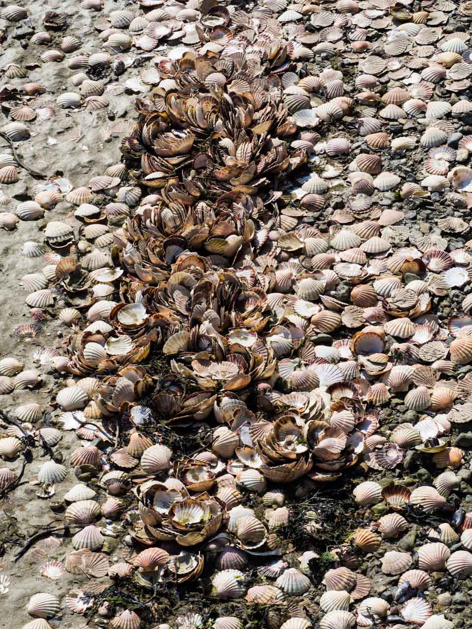 J’ai été séduite par ce lieu un peu rude et austère. Pas de boutiques, pas même un café, il y a quelques maisons sur le port (d’anciens magasins d’après mes recherches) mais un panneau indique que les camping-cars ne sont pas autorisés à stationner de manière prolongée, ce que je comprends tout à fait… Je peste souvent contre ces cachalots blancs qui constituent parfois une véritable pollution visuelle. Je pense aussi qu’on doit y vendre des coquilles St-Jacques, si j’en juge par le nombre de coquilles vides sur la grève devant le quai.