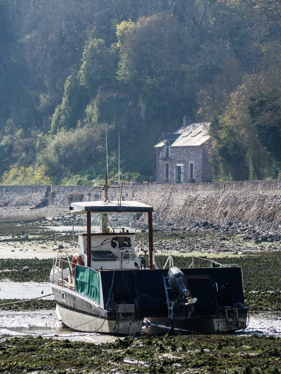 Le lieu était désert, la mer était basse, les bateaux sur le flanc, attendant le retour de l’eau. La vue sur la baie de la Fresnaye est à couper le souffle mais il n’y avait que moi ce jour-là (et un Canaillou fatigué dans la voiture) à Port-Nieux.