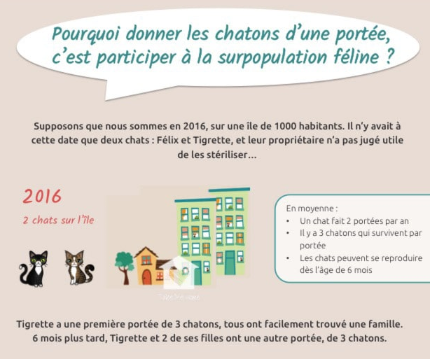 J’ajoute que toute adoption engage l’adoptant à faire stériliser son chat, car nous n’en serions pas là si tous les propriétaires de chats stérilisaient leurs animaux. Petite explication :