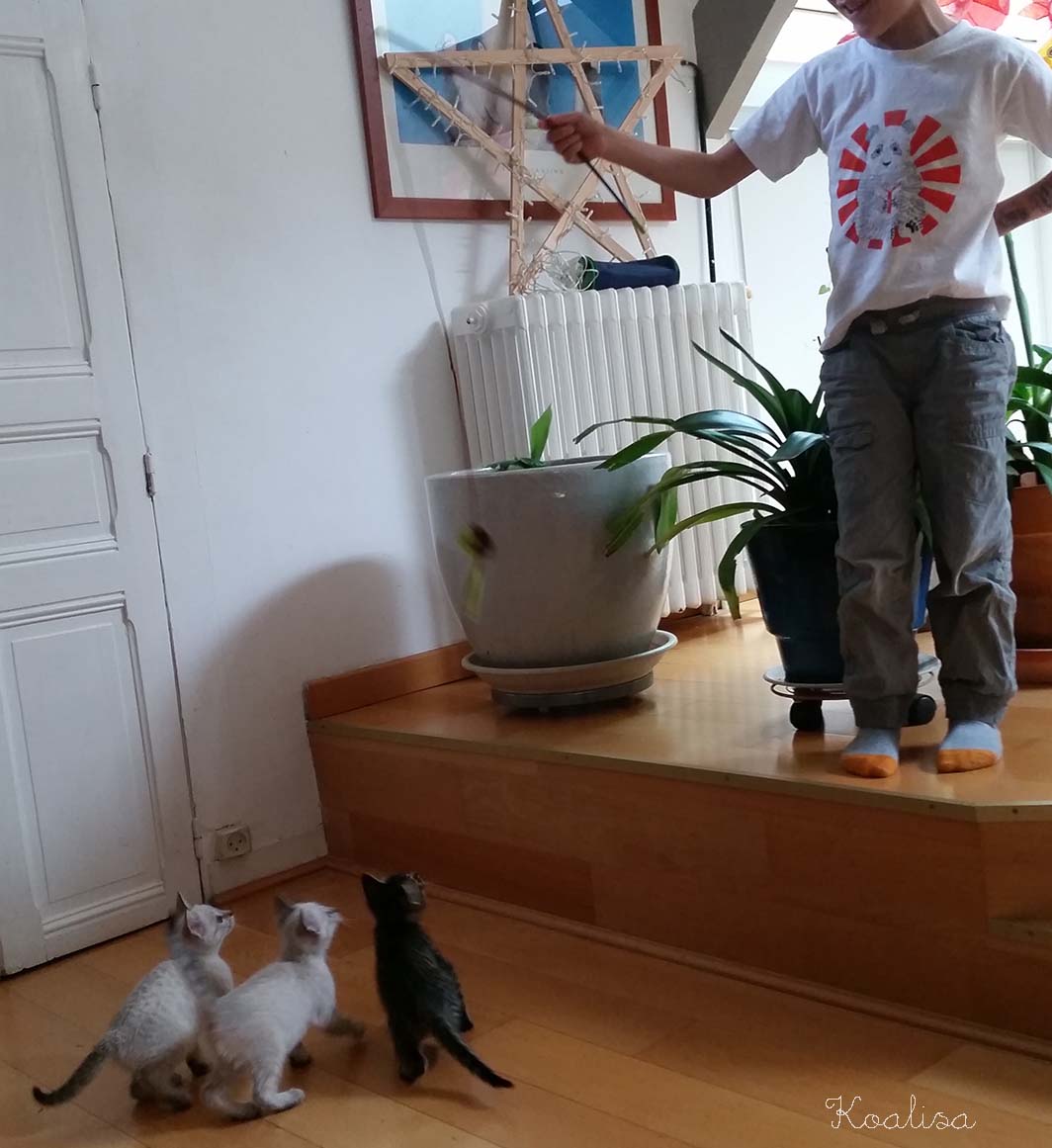 Maintenant ils sont en pleine forme et ont pu faire la connaissance de toute la famille. Il est important que les chats soient sociables, se laissent approcher par les enfants, acceptent les autres chats, éventuellement les chiens, c’est tout une éducation !