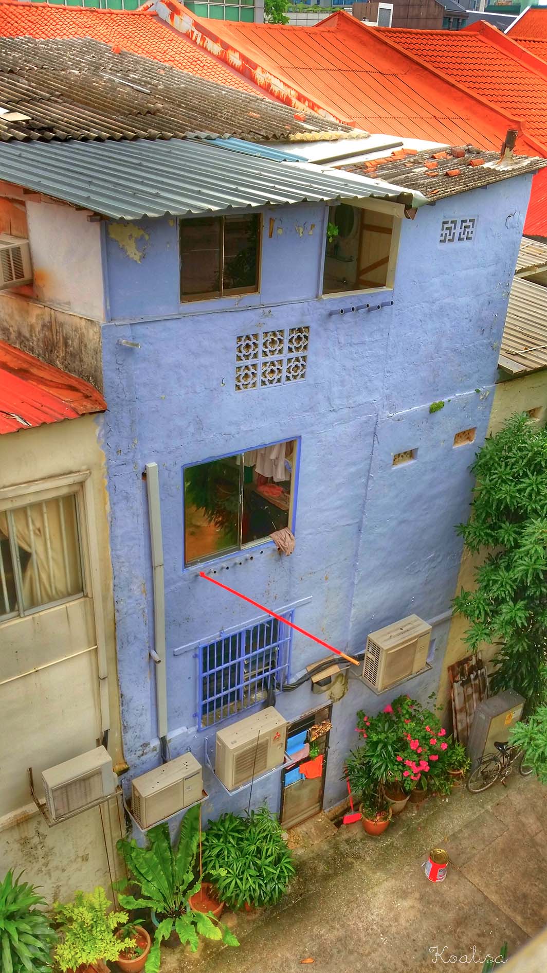 Ce quartier est très hétéroclite, avec d’un côté des buildings ultra-modernes et de l’autre des maisons recouvertes de tôle…J’aime beaucoup cette maison bleue juste en face de notre appartement ! Le bâton rouge qui dépasse sert à mettre le linge à sécher…