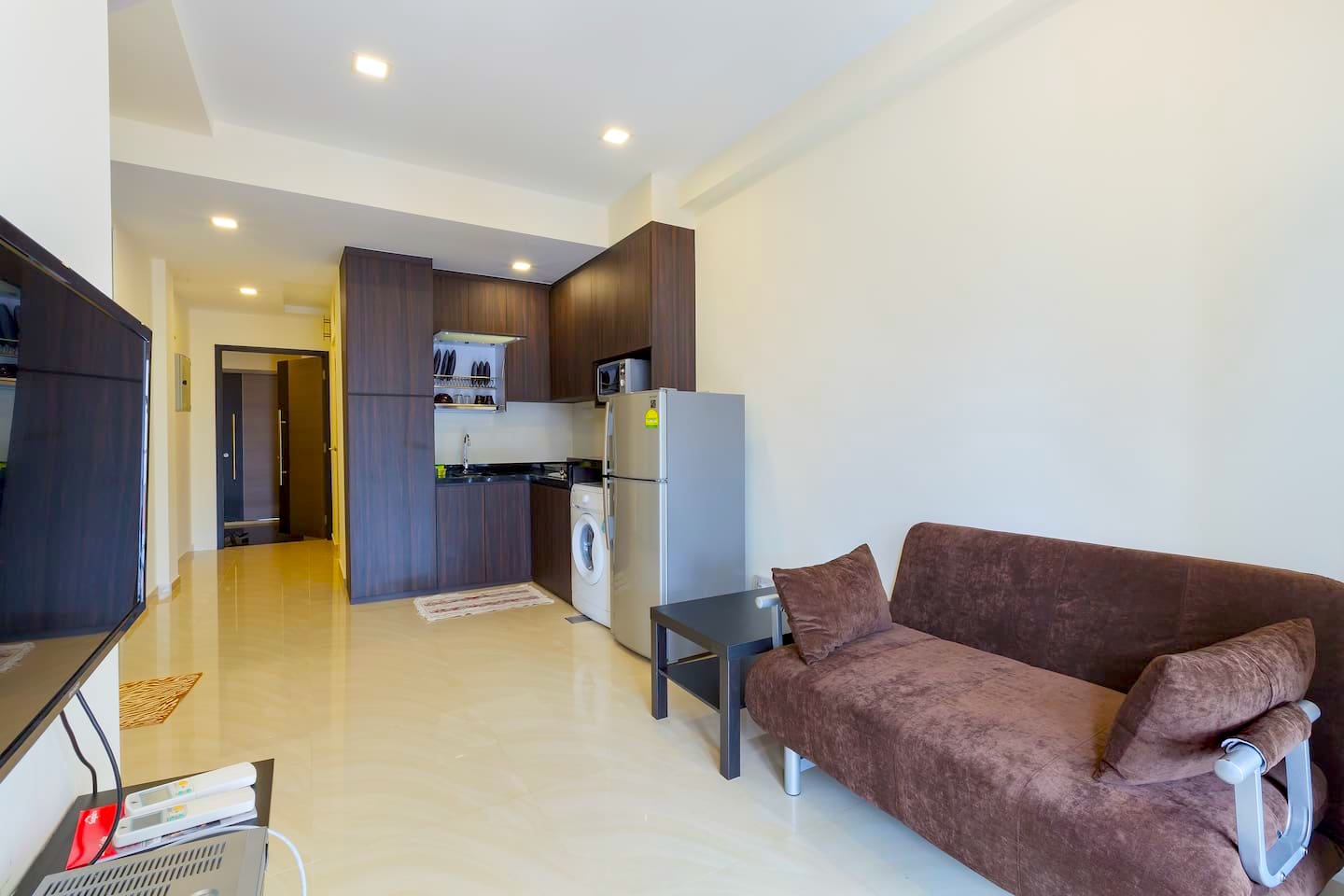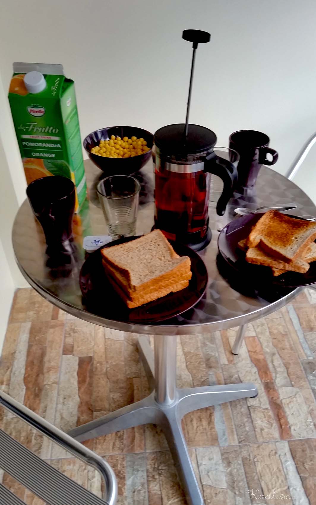 L’appartement était exactement comme sur la photo, extrêmement propre, avec une chambre double et un canapé-lit, la télé, le wifi, un sèche-cheveux, un lave-linge, des produits de toilette, de la lessive et la climatisation… Amar passait régulièrement nous voir et le ménage était fait tous les deux jours. J’ai trouvé cette formule très pratique car nous passions nos journées à marcher et étions bien contents, le soir, de faire juste quelques courses avant de rentrer dîner. Canaillou pouvait ainsi manger sans gluten, sans produits laitiers et sans oeufs, même s’il a fait quelques écarts le midi …