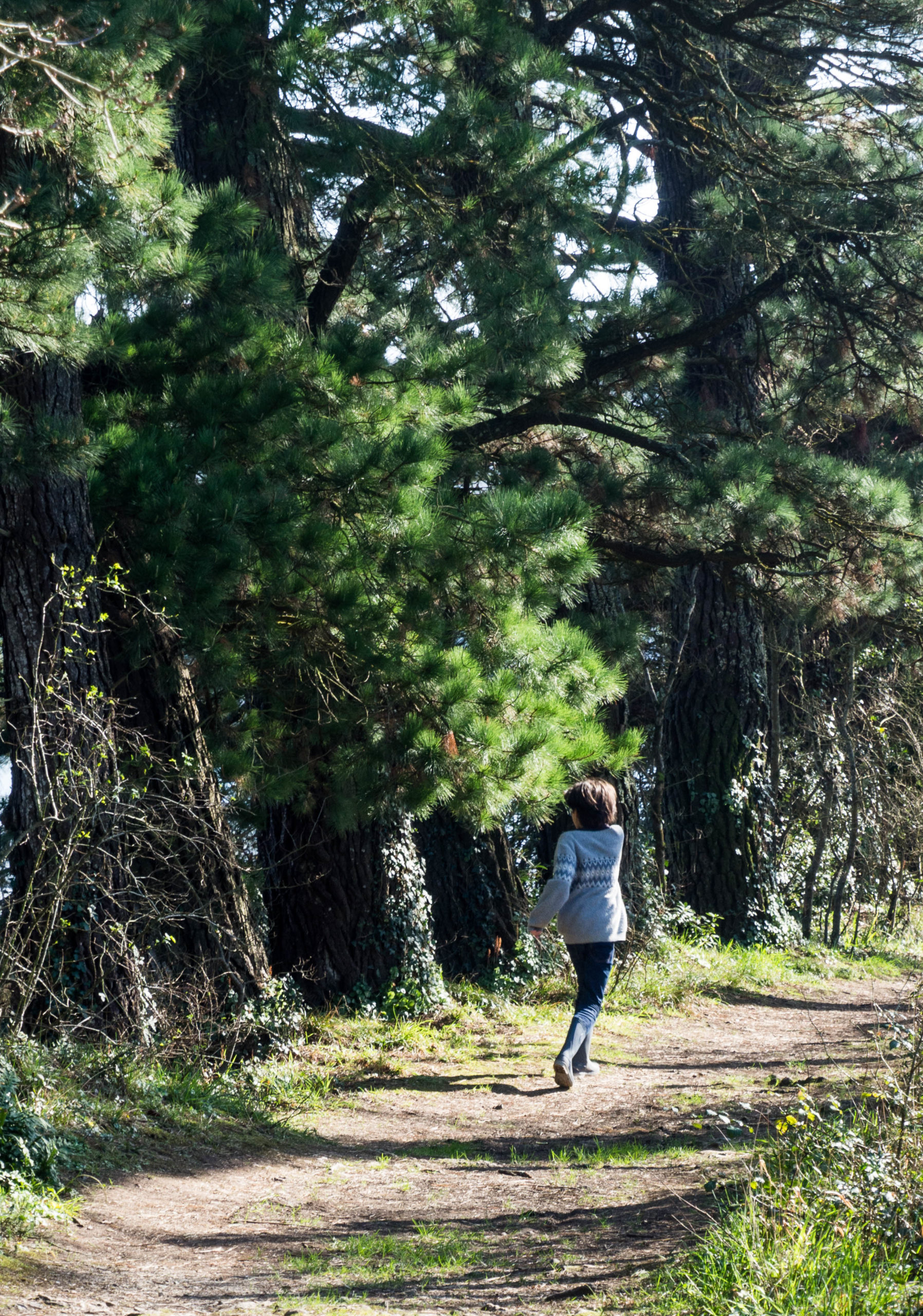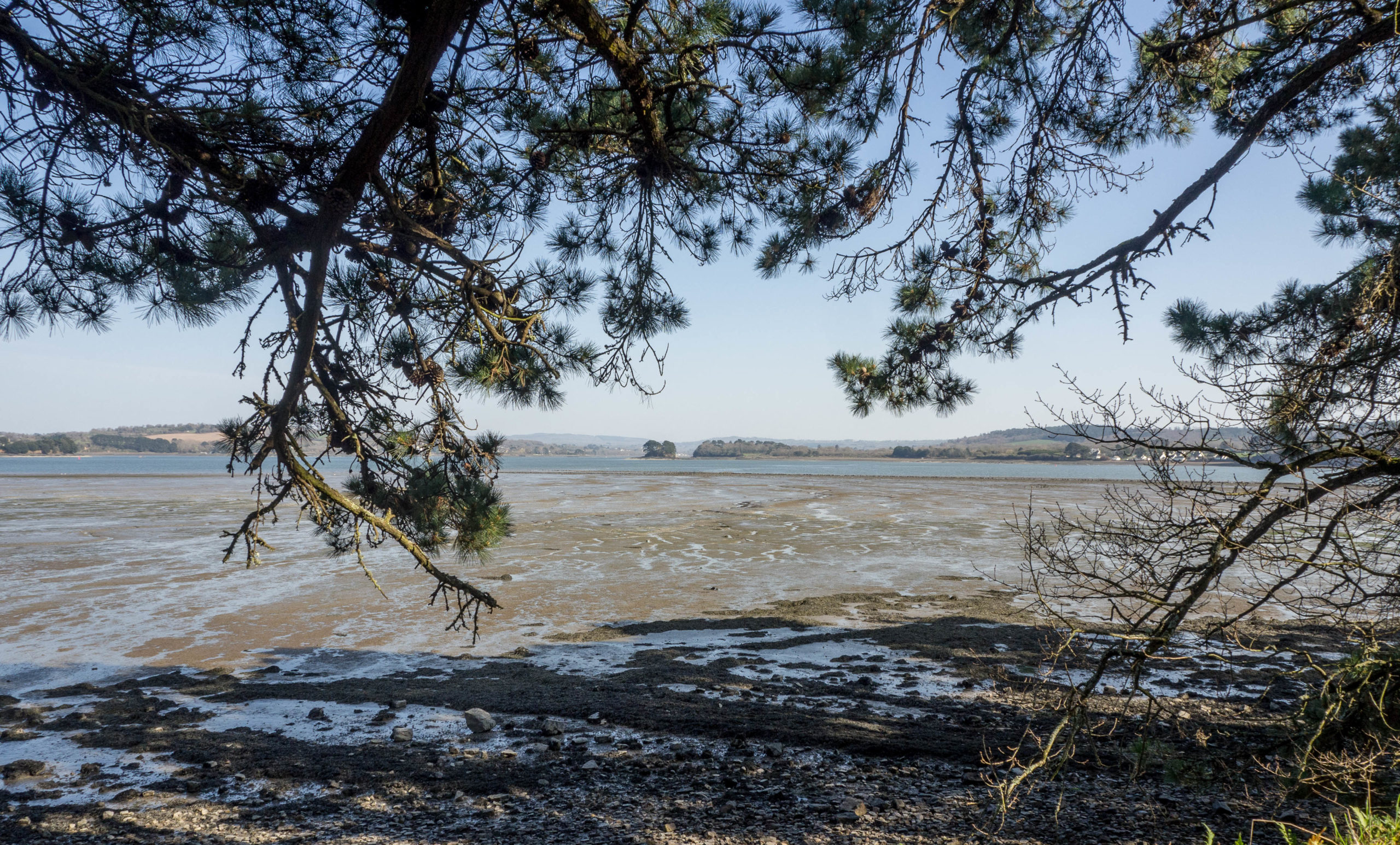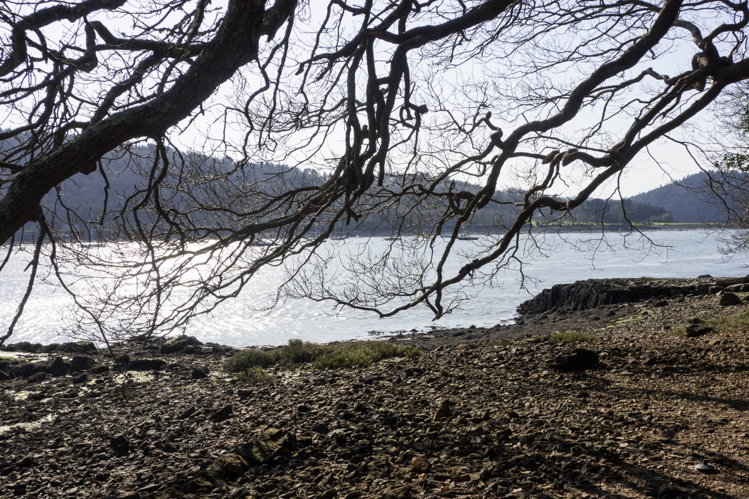 En été il fait frais sous les pins, et même en mars le soleil chauffe parfois un peu… Il y a toujours un tapis d’aiguilles de pin qui amortit les pas et on peut profiter d’une jolie vue sur l’Aulne maritime et la petite île de Tibidi.