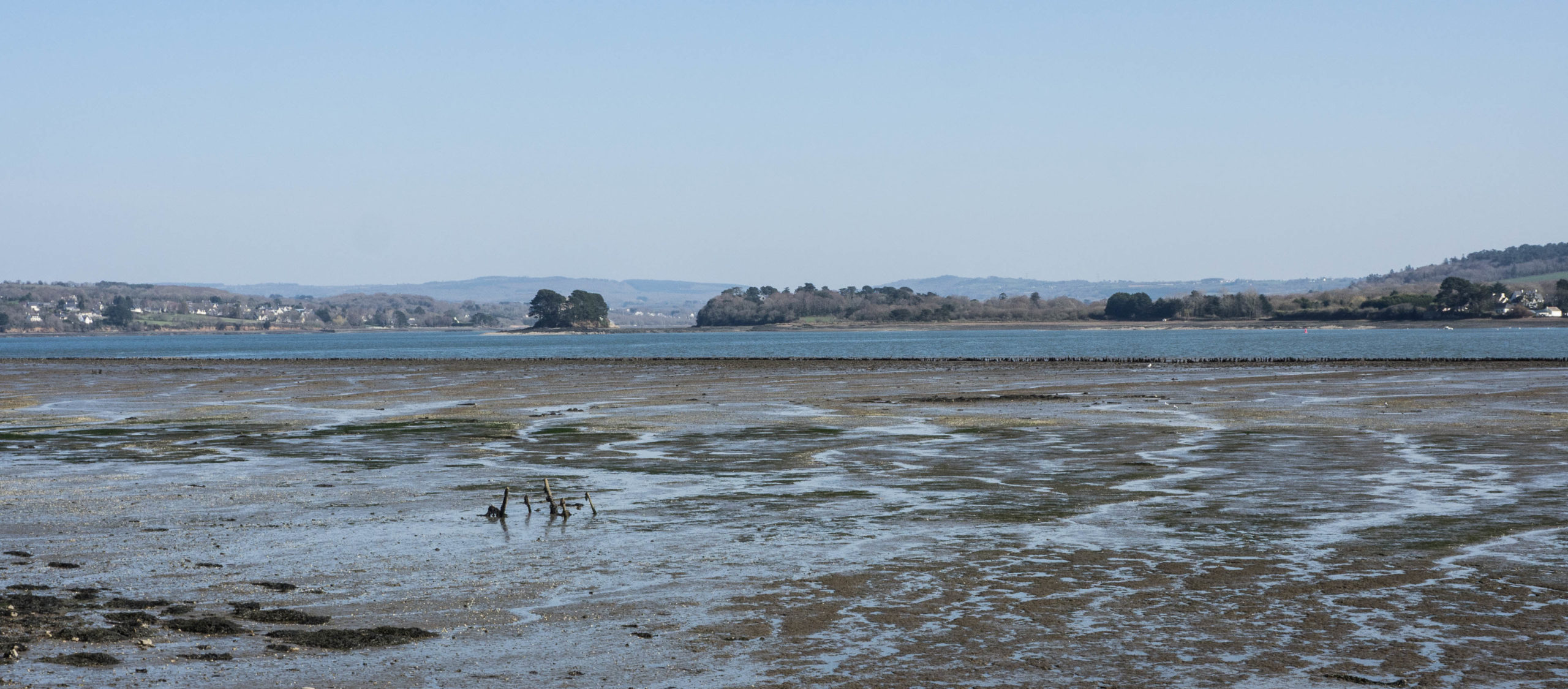 A marée basse, la vasière recèle des trésors, comme ces branches d’arbre pétrifiées. Attention à ne pas vous y aventurer toutefois , on s’enfonce très facilement !