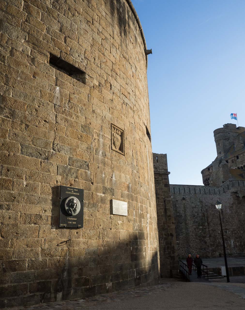 Je suis arrivée par la porte St-Vincent. Un petit clin d’oeil à Chateaubriand avant de monter les escaliers qui mènent aux fortifications.