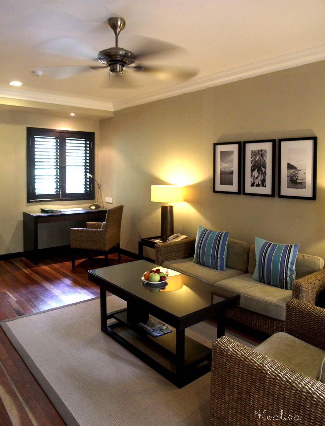 Nous avons séjourné au Taaras Resort à Redang (Avec le hashtag #thetaaras j’avais vu que l’endroit avait l’air plutôt chouette.) Pour y aller depuis Kuala Lumpur, nous avions réservé un vol avec la compagnie low cost Air Asia (aucun souci de ce côté-là non plus). Nous avons atterri à l’aéroport de Terengganu où nous avons été accueillis dans un salon privé réservé aux clients du Taaras Nous avons ensuite été conduits au port pour prendre un bateau ( piloté de manière très sportive mais nous avons l’habitude depuis notre mésaventure à Tioman !) qui nous a menés sur l’île. Un minibus nous a conduits jusqu’à l’hôtel et nous avons pu nous installer dans notre suite.