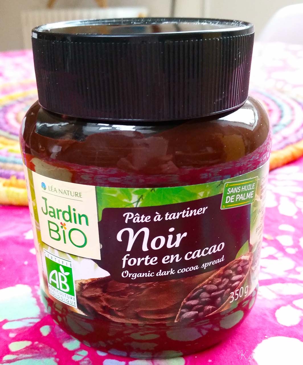 Avec les intolérances alimentaires de Caillou, je suis devenue experte en décryptage d’étiquettes alimentaires et j’en profite pour faire la chasse à l’huile de palme. Le Nutella, entre autres, c’est bel et bien fini, je vous assure que ça m’a calmée quand j’ai vu les plantations de palmiers à huile s’étendre à perte de vue en Malaisie. J’ai presque honte d’avoir proposé des recettes au Nutella sur ce blog à une époque…D’ailleurs il faudrait boycotter cette marque, ça les obligerait à utiliser autre chose que l’huile de palme . J’ai trouvé une pâte à tartiner au chocolat noir que Canaillou adore (oui, je sais, je peux aussi la faire moi-même !).