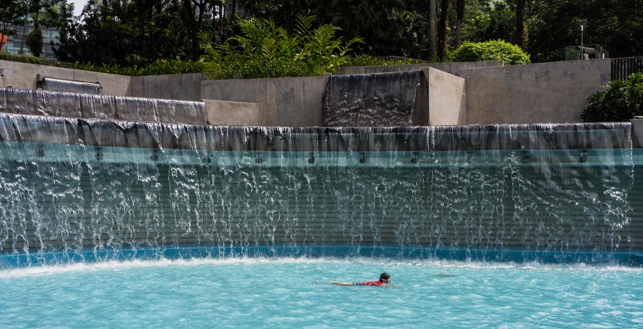 Le contraste est grand entre l’ambiance animée de KLCC et le calme du parc. Bien sûr, ce dernier attire pas mal de monde mais la végétation luxuriante donne une impression (trompeuse !) de fraîcheur et de calme.