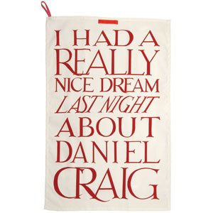 P.S: Les anglaises apprécient apparemment beaucoup Daniel Craig, au point que chez Emma Bridgewater (dont je vous ai déjà parlé ici), on trouve des torchons dédiés à ce dernier…. Voyez plutôt (et c’est en rupture de stock en ce moment !!!):