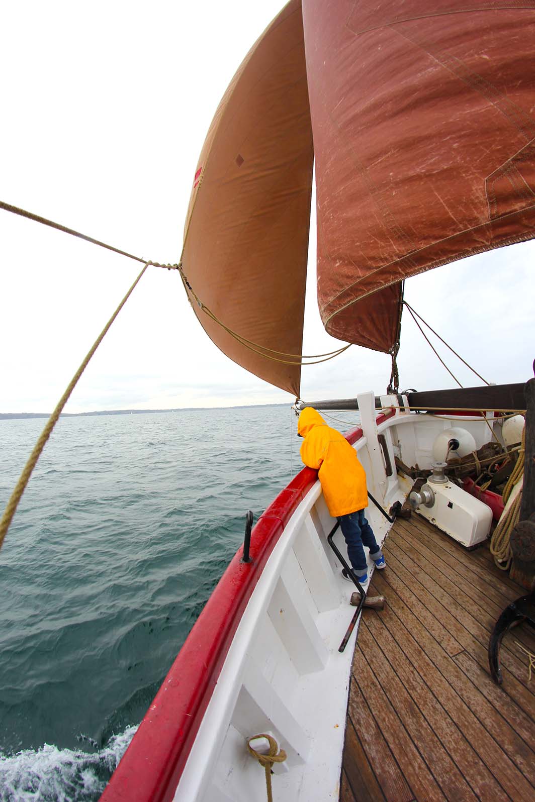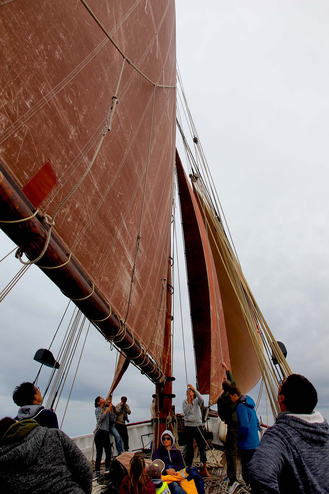 L’avantage de cette sortie, même si elle revient plus cher qu’une balade en vedette, est que le nombre de passagers est réduit (une douzaine de personnes), et que l’équipage prend soin de nous expliquer toutes les manœuvres, répondant à nos questions et nous invitant même à participer à la navigation !