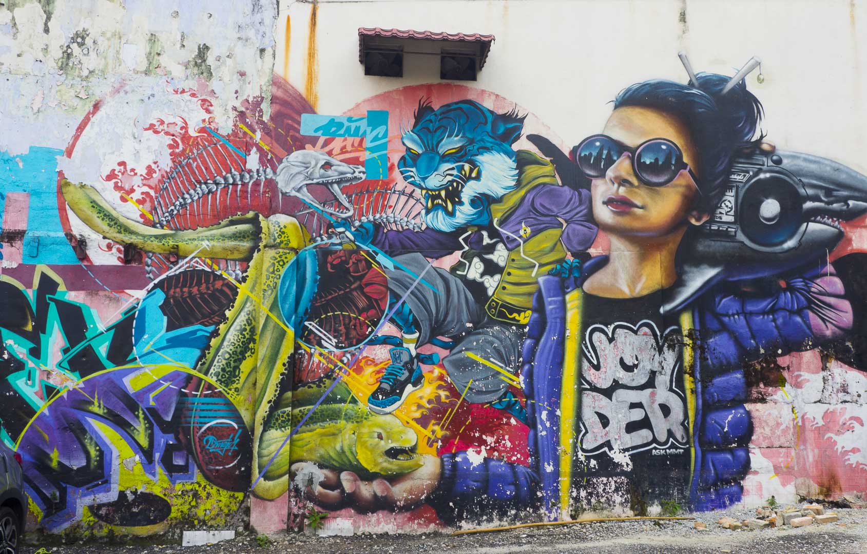 Et pour finir, je vous laisse admirer cette fresque géante nommée Funkdamental réalisée par l’illustrateur et graffeur malaisien Katun en collaboration avec les street artists BlackMarket, voyder, Reeze et Siek.
