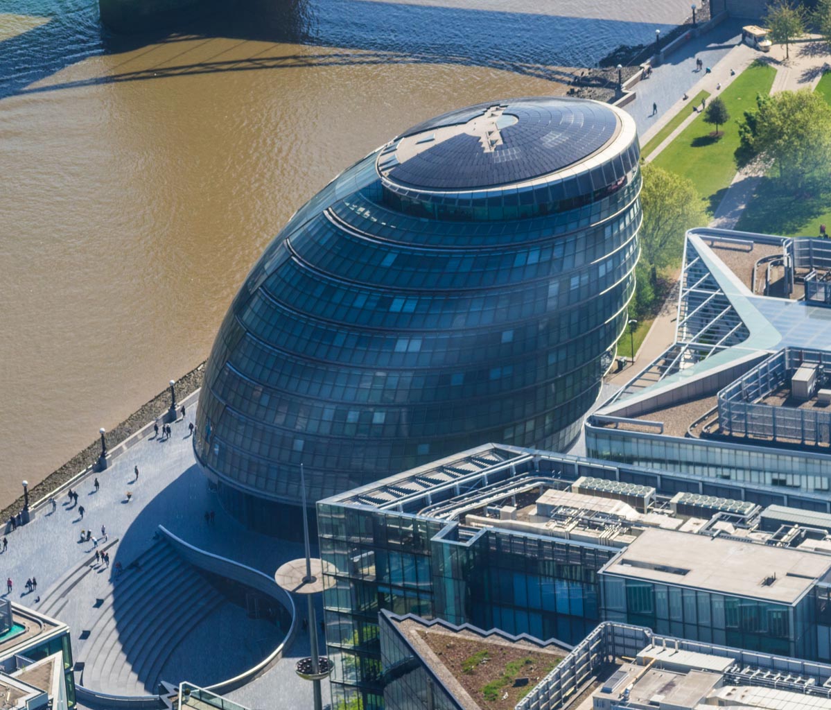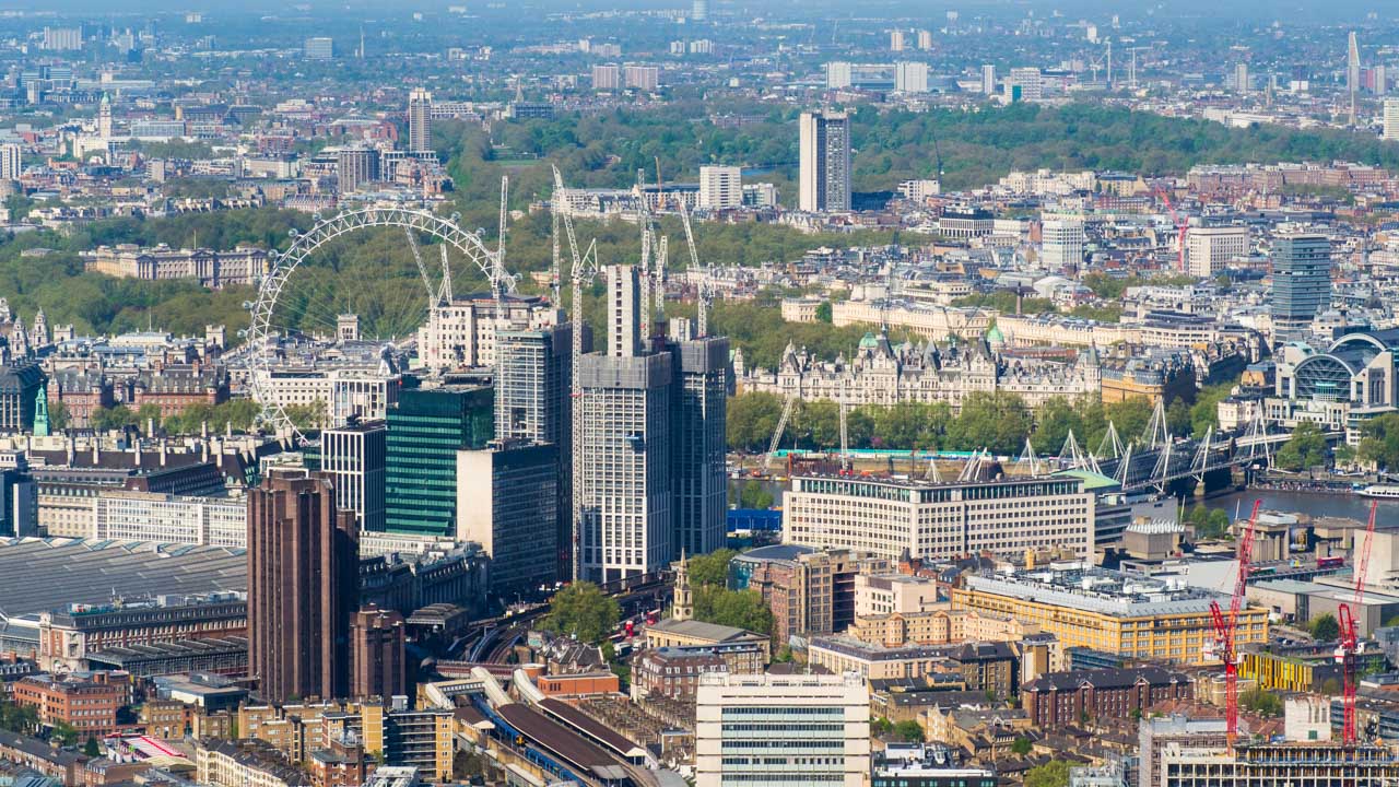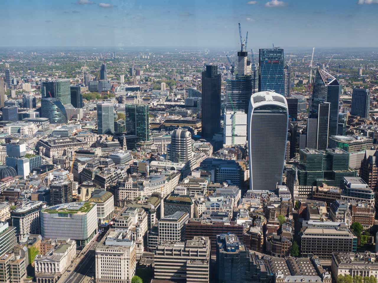 The Gherkin est à présent malheureusement caché derrière un autre immeuble en construction mais on voit The Walkie Talkie…