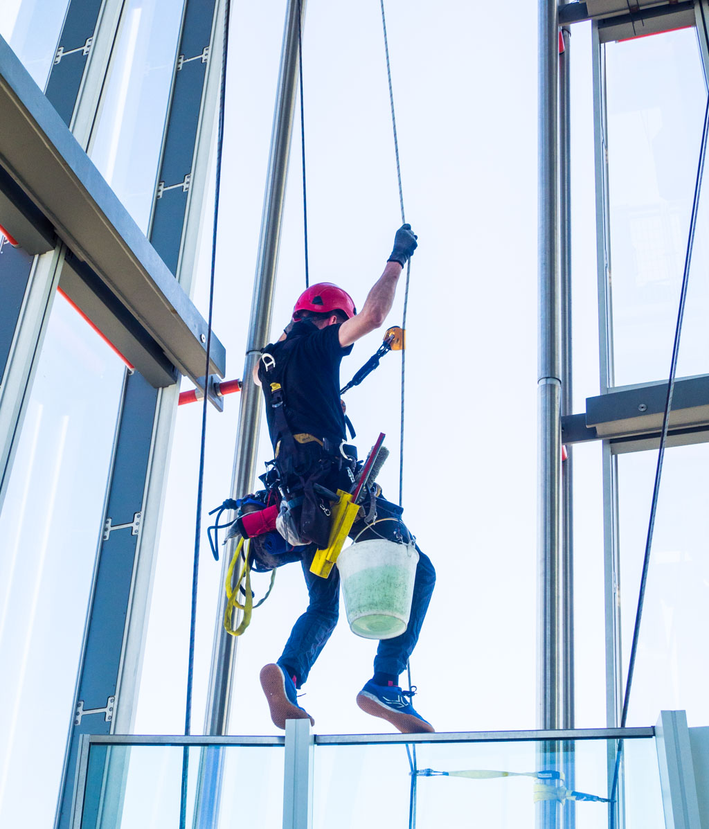 Nous avons pu constater que l’entretien d’un immeuble fait entièrement de panneaux de verre nécessite l’emploi de laveurs de carreaux plutôt sportifs et n’ayant pas le vertige…