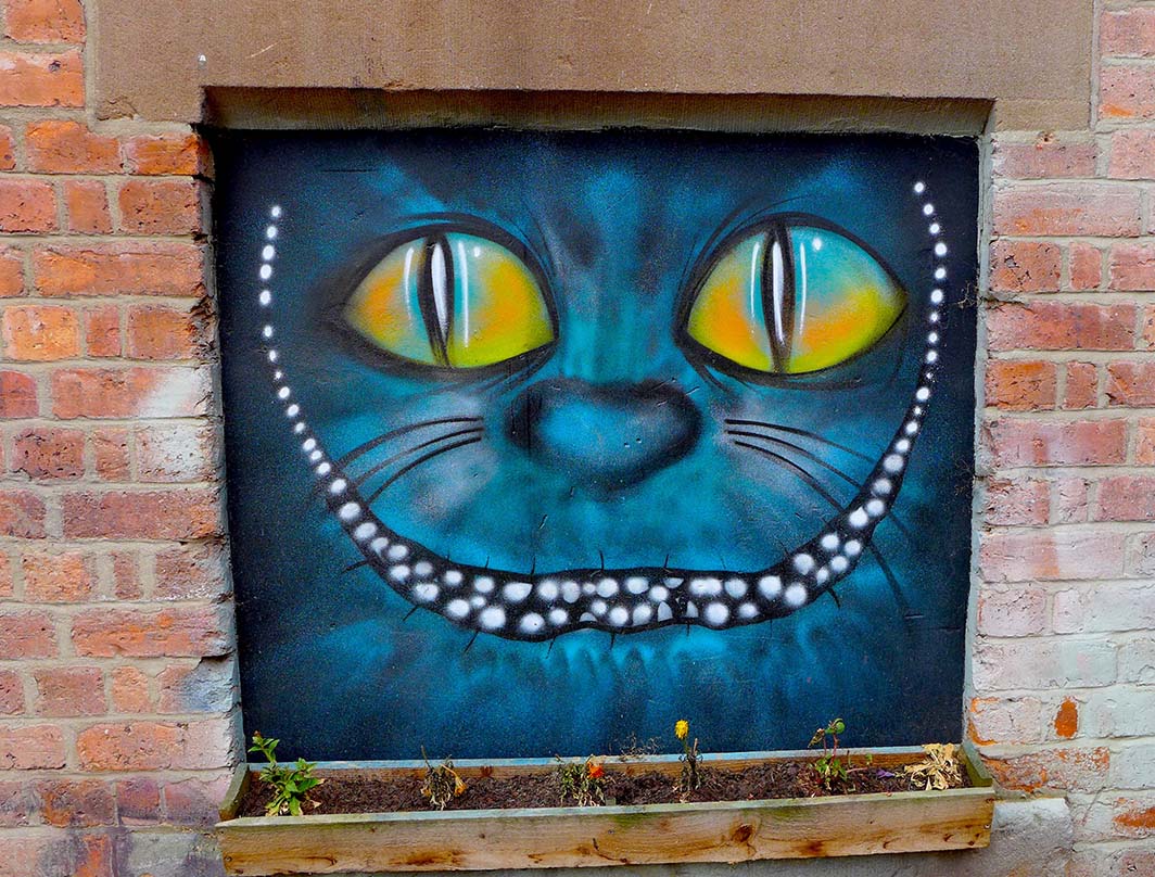 Il se situe au sous-sol de la brocante Hopkinson à Nottingham, et pour le trouver, il faut suivre les flèches ainsi que le sourire du Cheshire Cat…