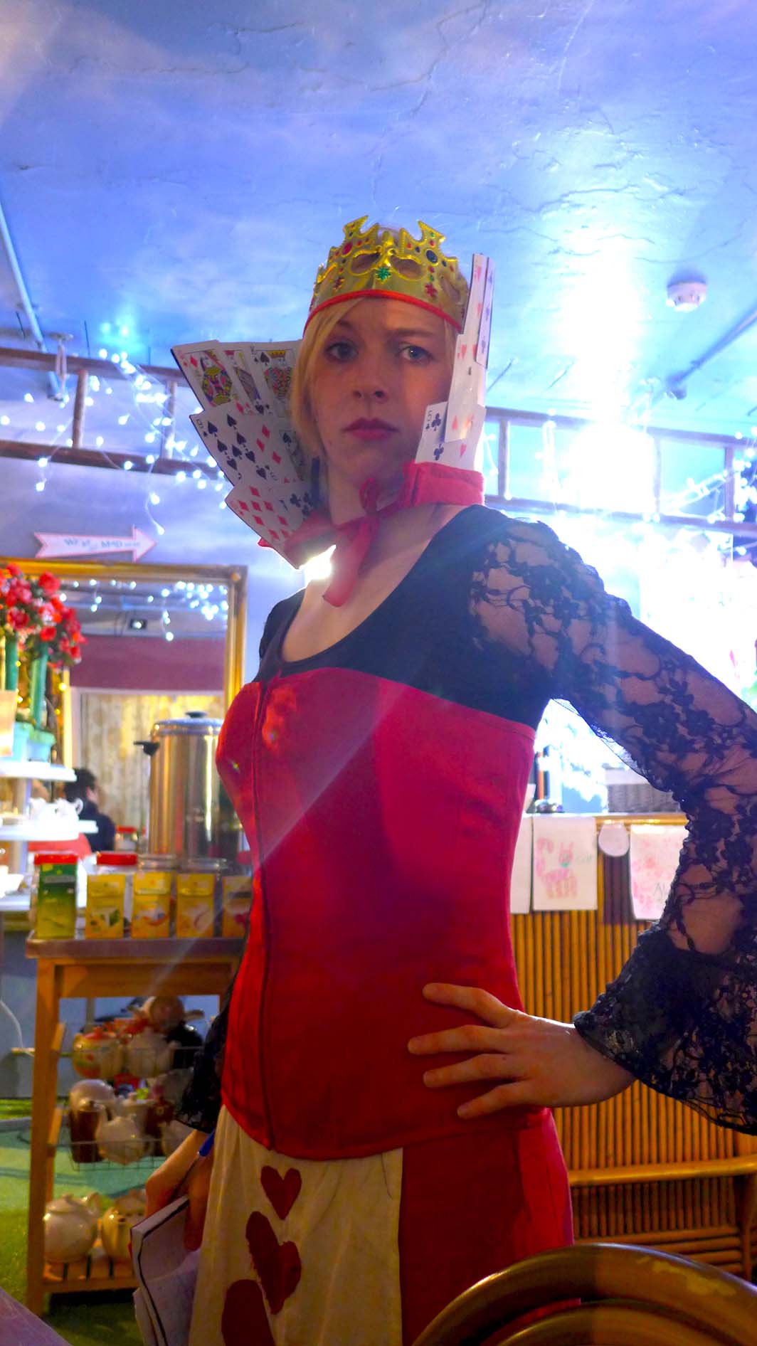 Une fois à l’intérieur, nous avons entendu la méchante Reine de Coeur hurler à Alice de venir s’occuper de nous ! Car les employés sont déguisés, si, si, je vous assure… Et la reine ne rigole pas, c’est clair…