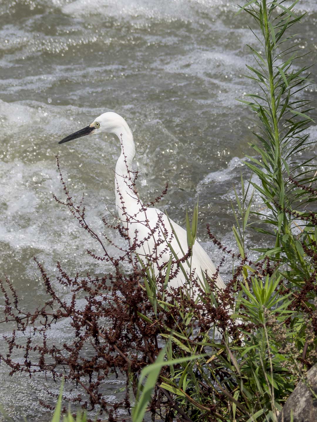 Je suis allée au bord de l’eau pour photographier les bateaux et c’est là que j’ai vu deux aigrettes, l’une à bec jaune, l’autre à bec noir. Décidément je vois ces oiseaux partout où je vais, il y en a aussi à Lancieux !