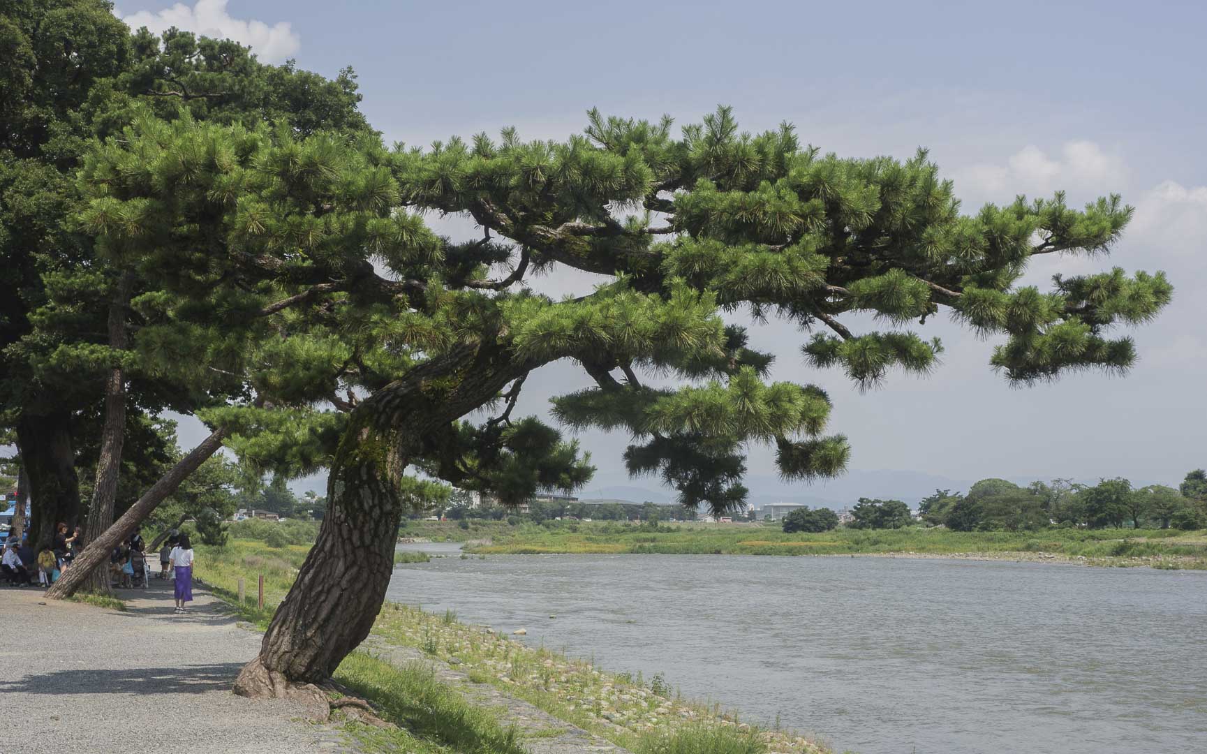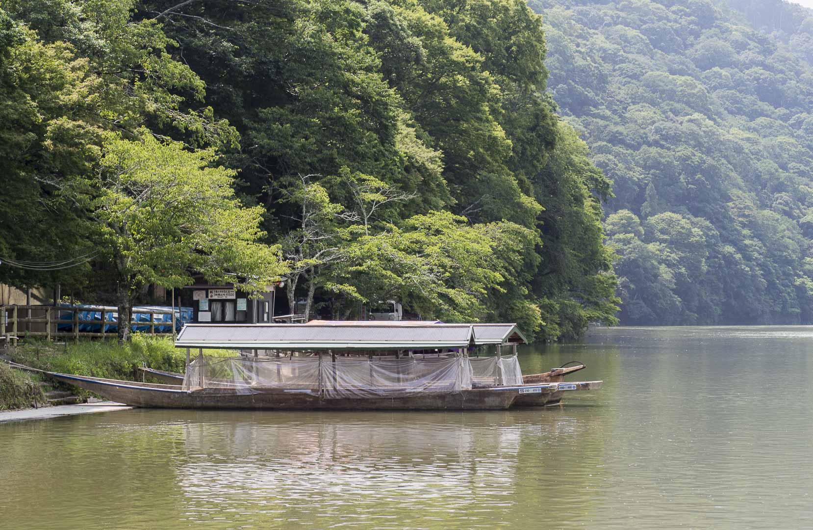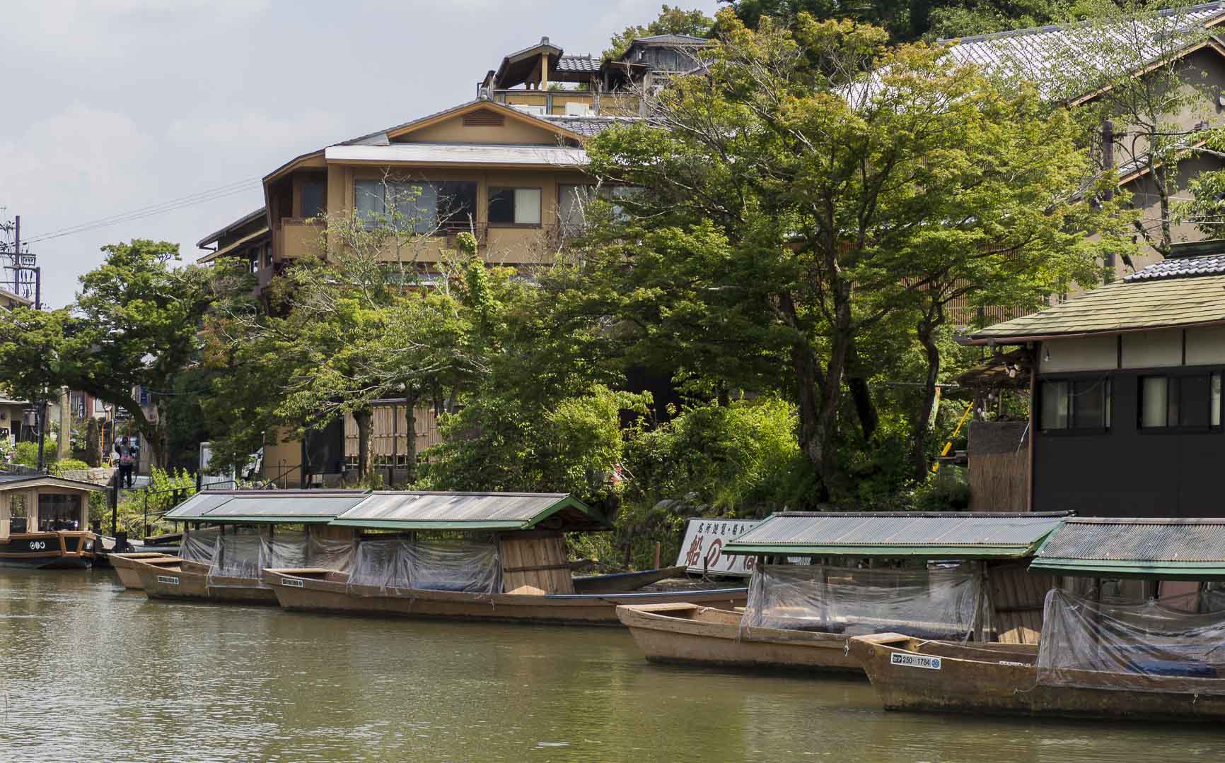 Après avoir longé la rue principale nous sommes arrivés au pont Togetsukyo (pont traversant la lune) qui enjambe la rivière Katsura. Le pont date du 9ème siècle mais a été déplacé au fil du temps, suite à des incendies (comme la plupart des constructions en bois de Kyoto !). Nous y avons fait une petite halte à l’ombre, au bord de l’eau…