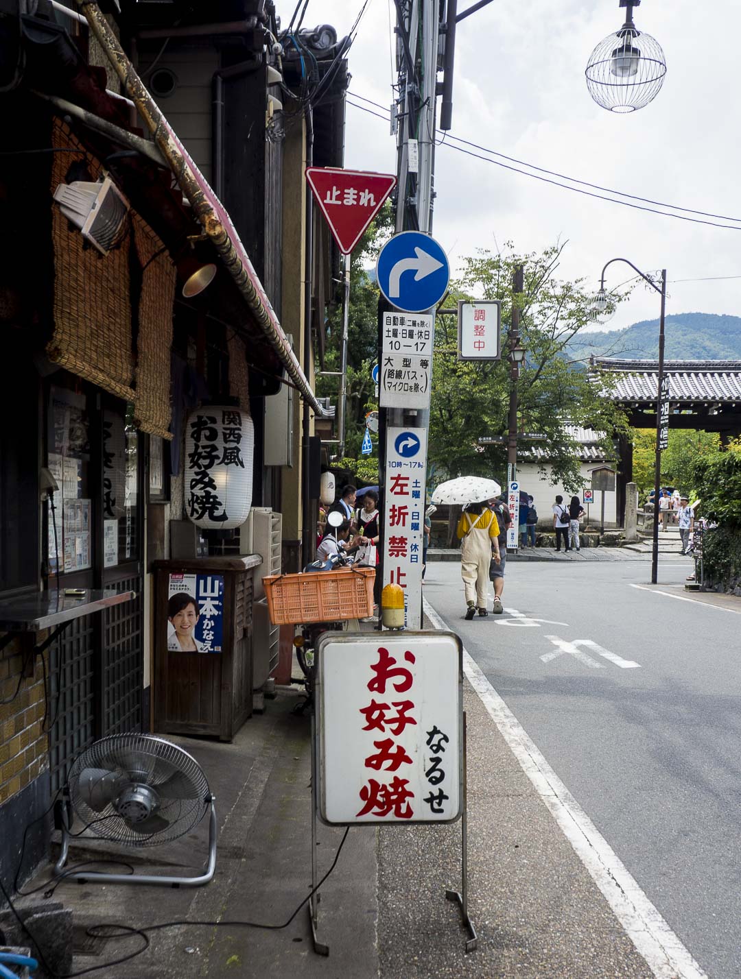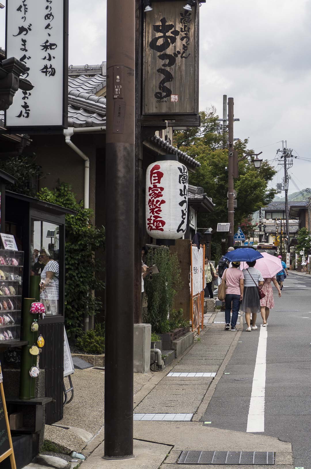 Après notre promenade dans la forêt de bambous nous avons repris le chemin d’Arashiyama sous un soleil de plomb. Ici les parapluies servent aussi à se protéger du soleil…