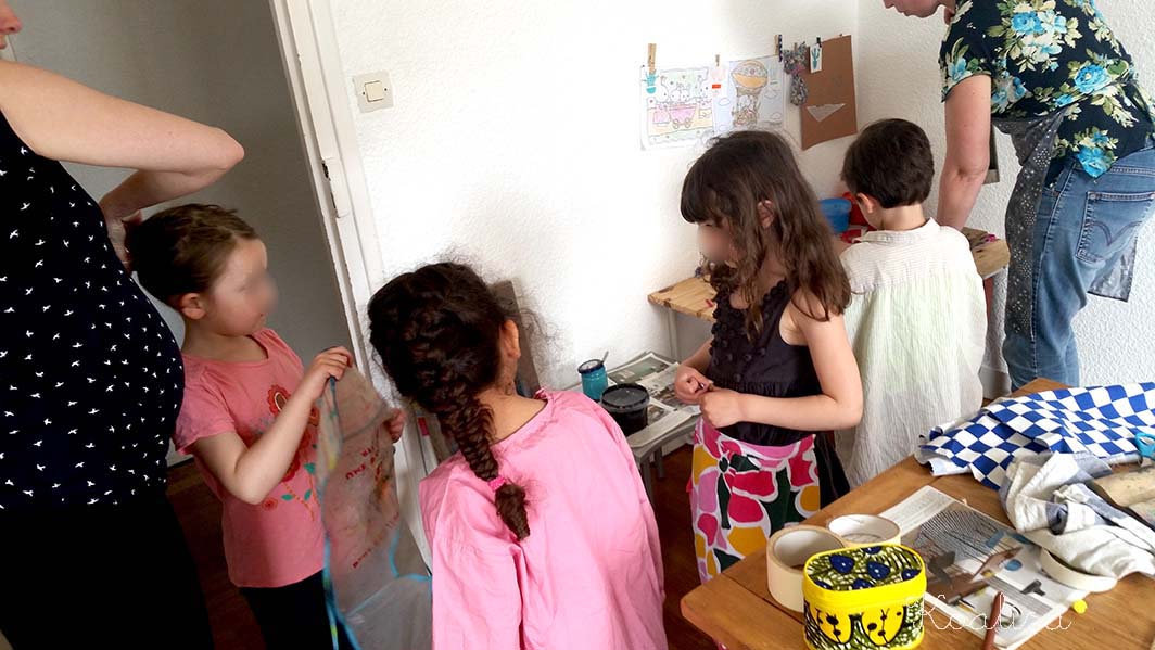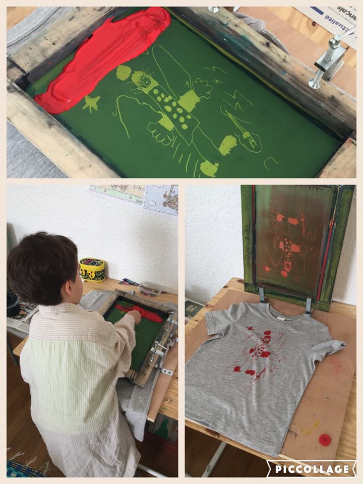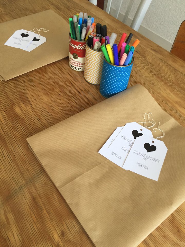 Un mercredi après-midi, les quatre enfants ont donc pu eux-mêmes sérigraphier les tee-shirts, qu’ils ont ensuite emballés dans une jolie pochette-cadeau personnalisée.