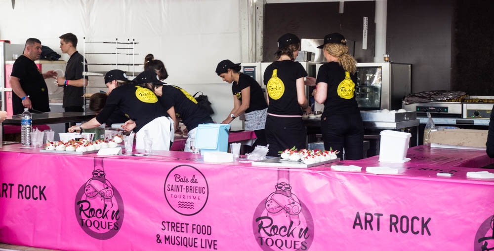 L’art culinaire est donc bien présent, avec Rock’n Toques, le 11ème rendez-vous gastronomique du festival. Organisé par l’Office de Tourisme et des Congrès de la baie de Saint-Brieuc, Rock’n Toques propose d’associer musique et bonne bouffe en programmant tous les jours, midi et soir, des menus de gourmets imaginés par des chefs briochins. En tout, 16 000 assiettes ont été servies en trois jours !