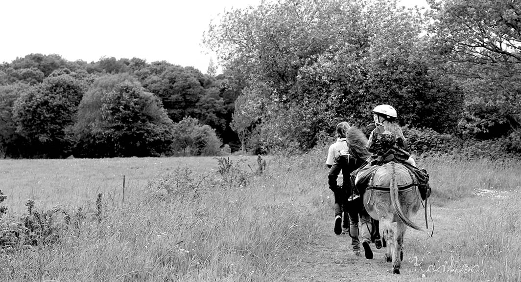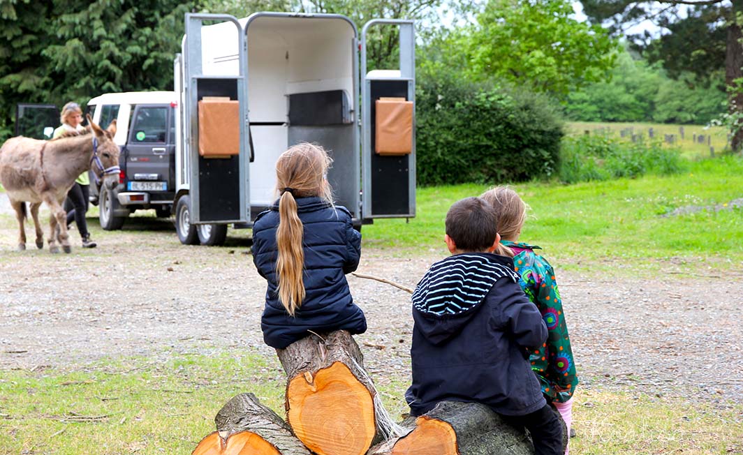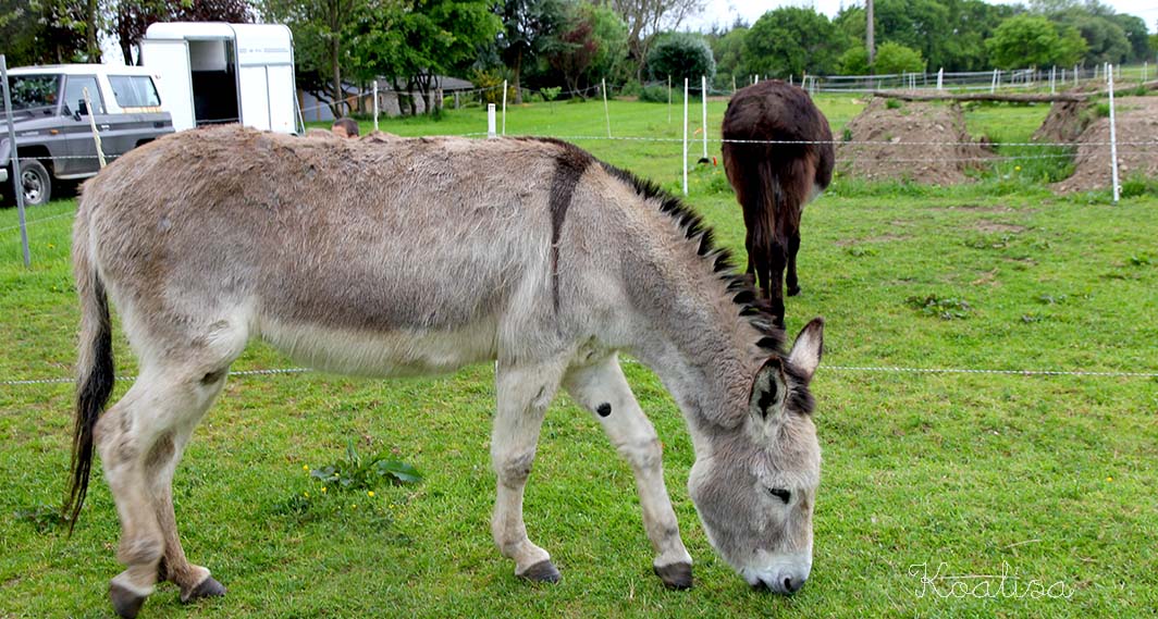 Nous avons retrouvé Sylvie et Jacky à la lisière du bois d’Avaugour, en train de préparer Pamela et Mirabelle, les deux ânesses qui nous ont accompagnés tout l’après-midi. Ces deux ânesses sont inséparables , il faut savoir que les ânes ont des liens amicaux très forts…