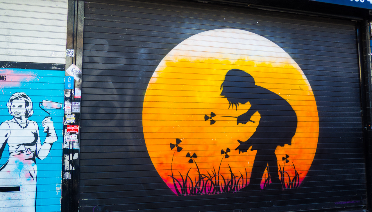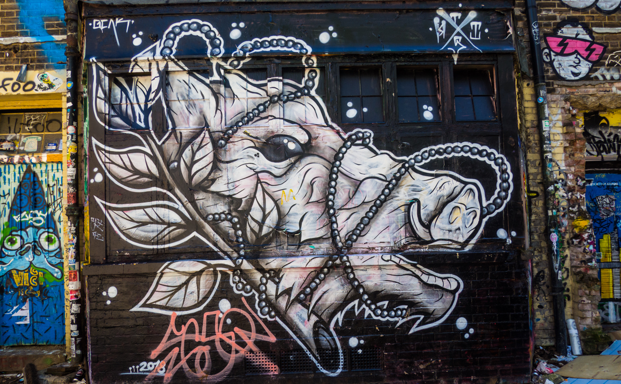 Brick Lane, dans l’East End londonien, est une rue célèbre pour abriter certains des crimes de Jack l’Eventreur, ce tueur en série qui assassinait les prostituées au 19 ème siècle. Il existe même un Jack the Ripper Tour qui emmène les touristes sur les lieux du crime…Effectivement certains bâtiments ont l’air figés dans le temps et se prêtent bien à ce genre de tourisme. Personnellement, je suis juste allée à Brick Lane pour y faire des photos de street art et j’ai découvert par la même occasion que cette rue est aussi le domaine de la fripe vintage…