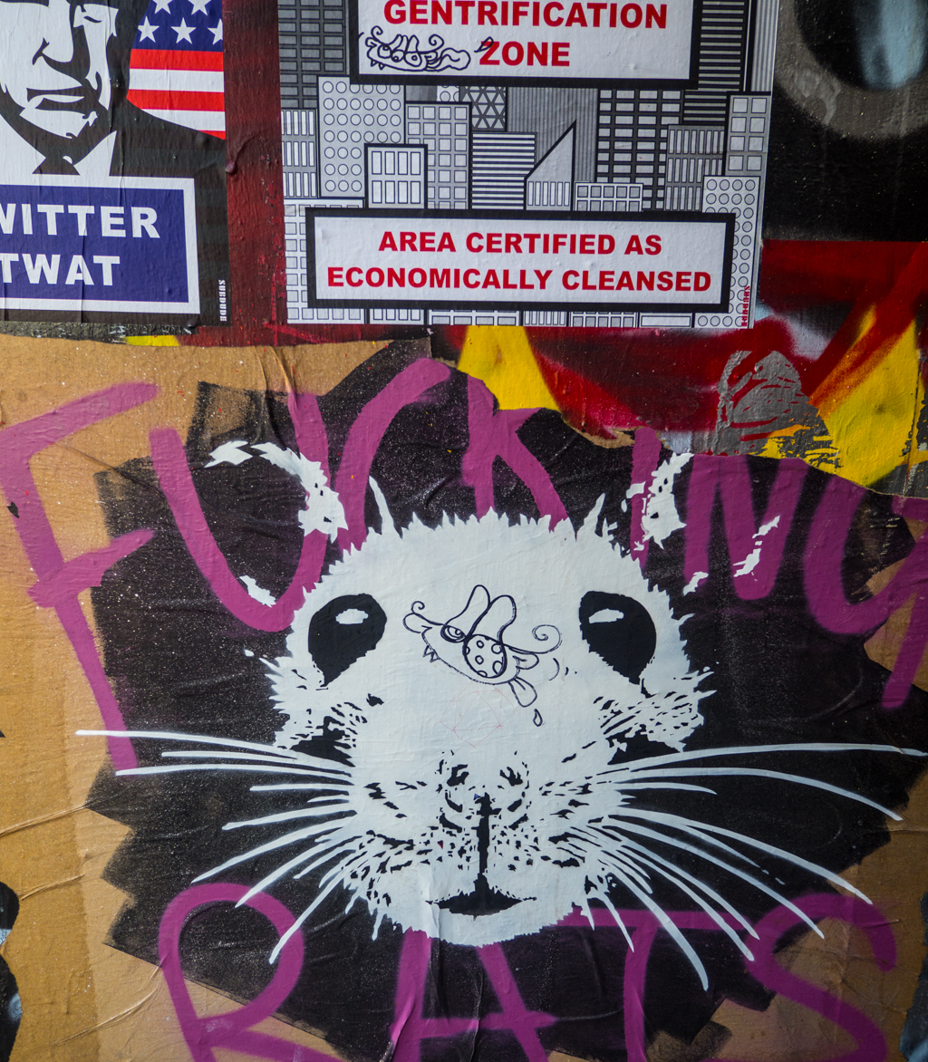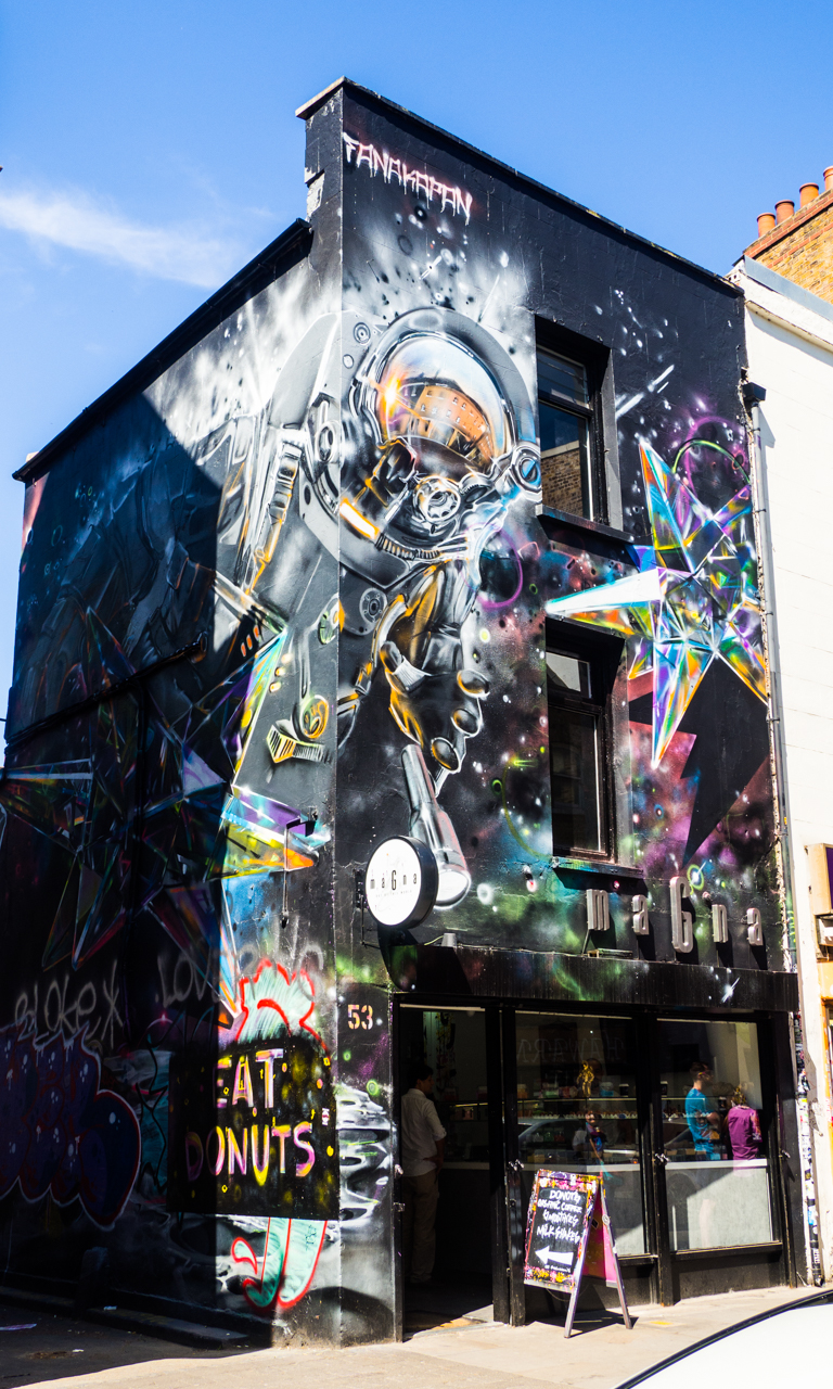 On trouve à Brick Lane un mélange étonnant de boutiques branchées, de restaurants indiens et d’appartements un peu délabrés qui devraient disparaître sous peu puisque Brick Lane est en cours de gentrification, ce qui n’est pas forcément du goût des locaux purs et durs qui ne voient pas toujours d’un bon oeil l’arrivée des hipsters et designers.
