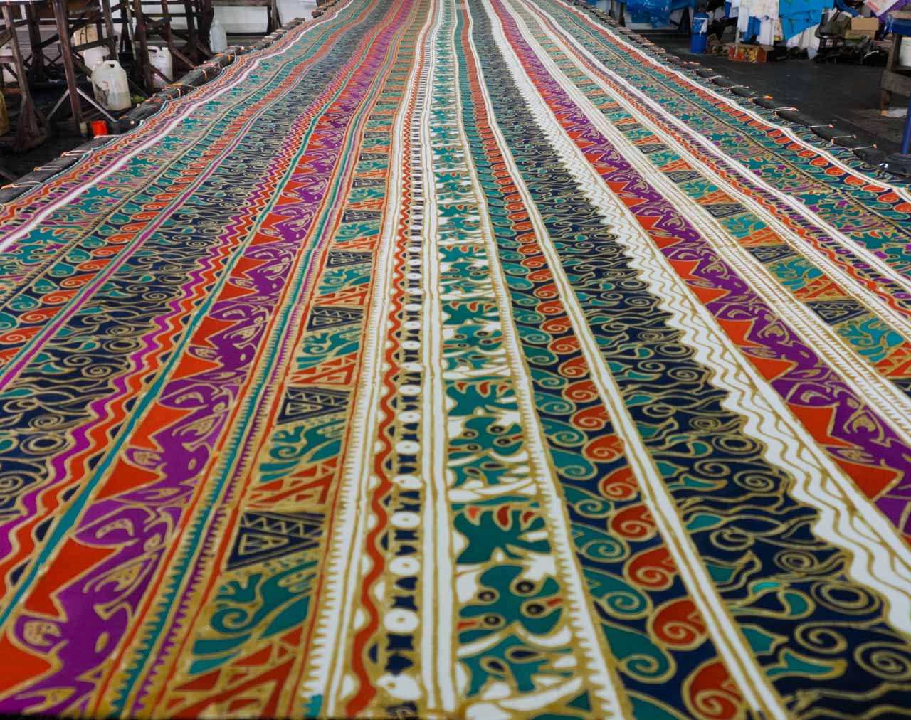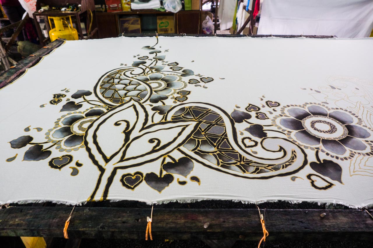 Le batik est une technique ancestrale de décoration de tissu (du coton en général). Le tissu est tendu à l’horizontale et les artisans déposent de la cire chaude sur les parties du tissu qui ne doivent pas être colorées . La cire empêchera la teinture d’imprégner le tissu.