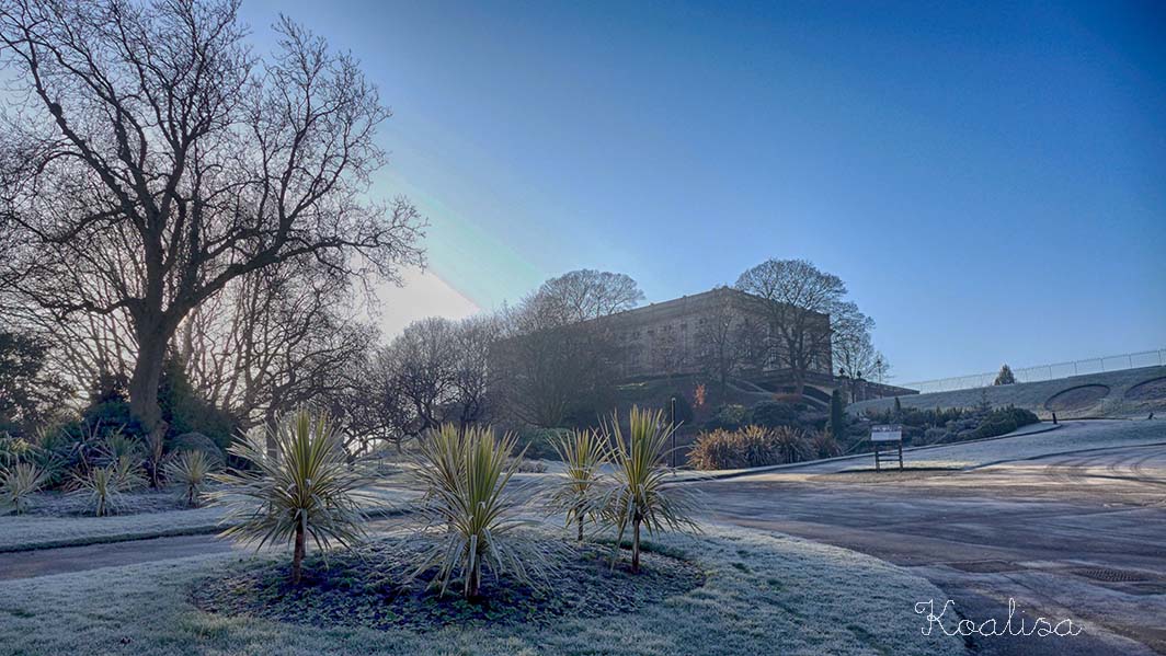 Le jour où je suis allée voir le château avec mon fils, il faisait très froid, le parc était complètement gelé mais le temps était radieux avec un beau soleil…