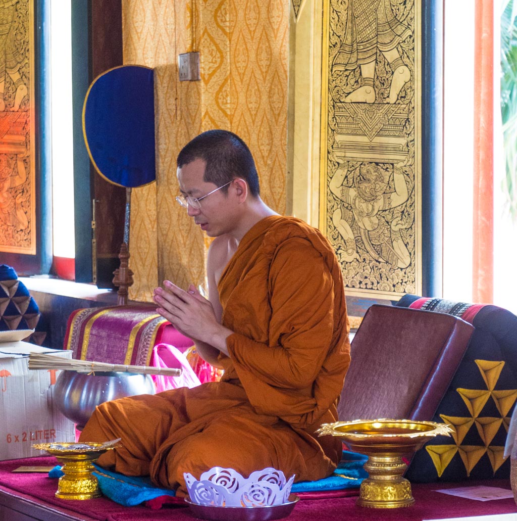 Oui, on se croirait en Thaïlande ! Une règle de plus : les femmes n’ont pas le droit de toucher un moine…