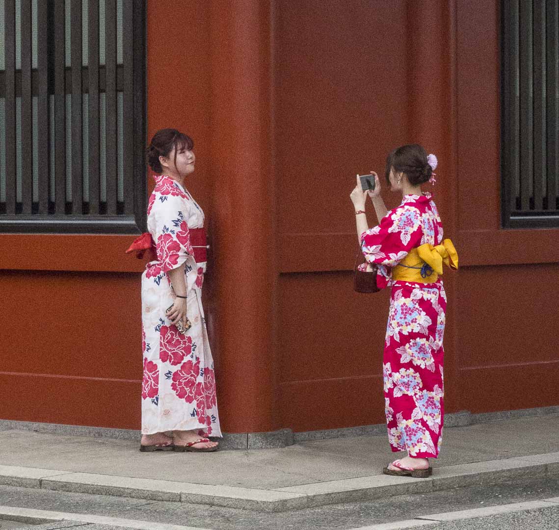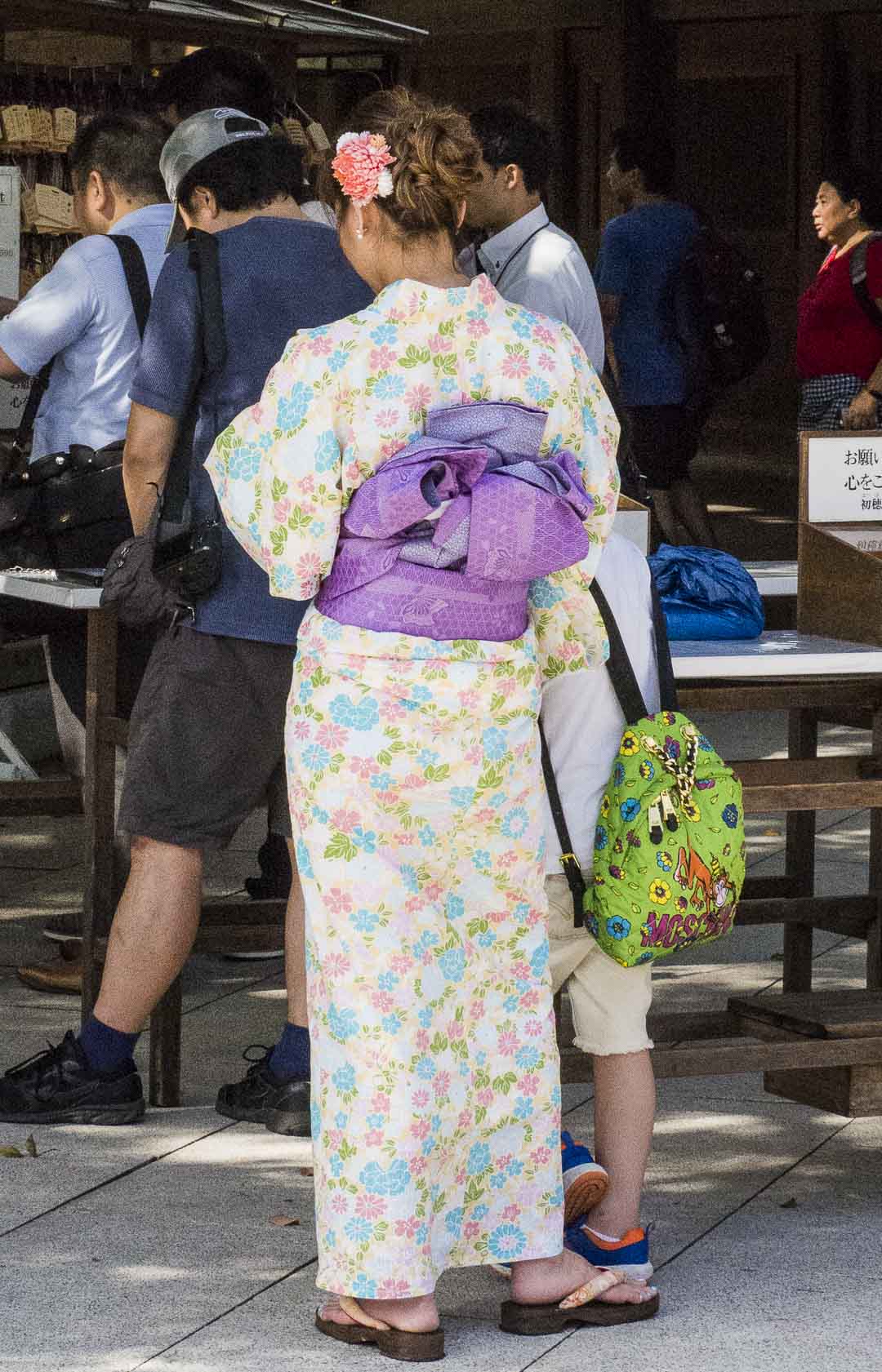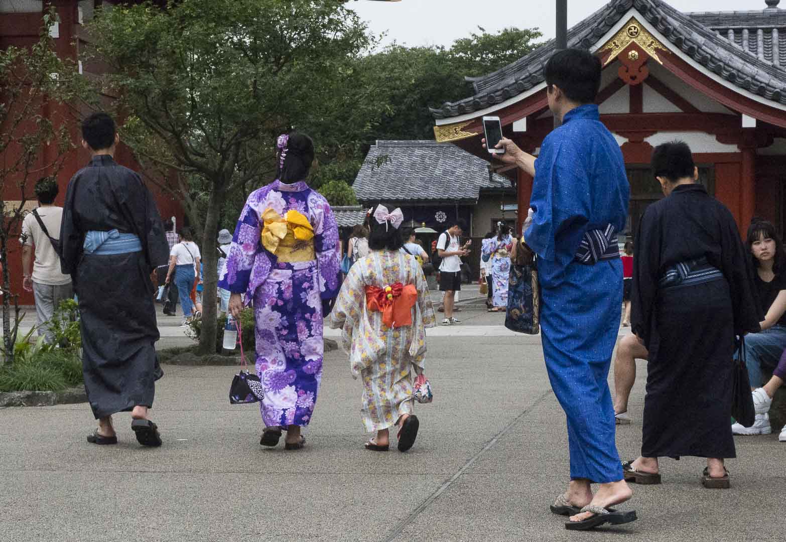 Il y a des japonaises qui portent le kimono au travail aussi, c’est loin d’être un déguisement. Et nous avons vu des dames âgées en kimono dans la rue…