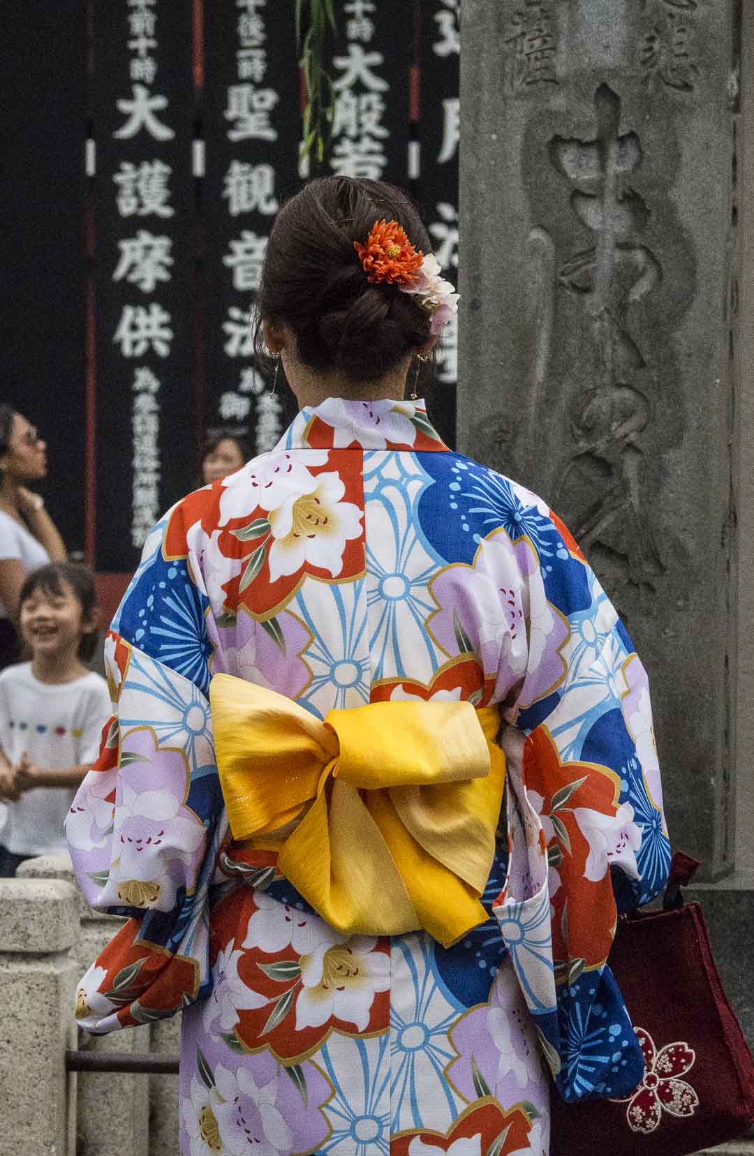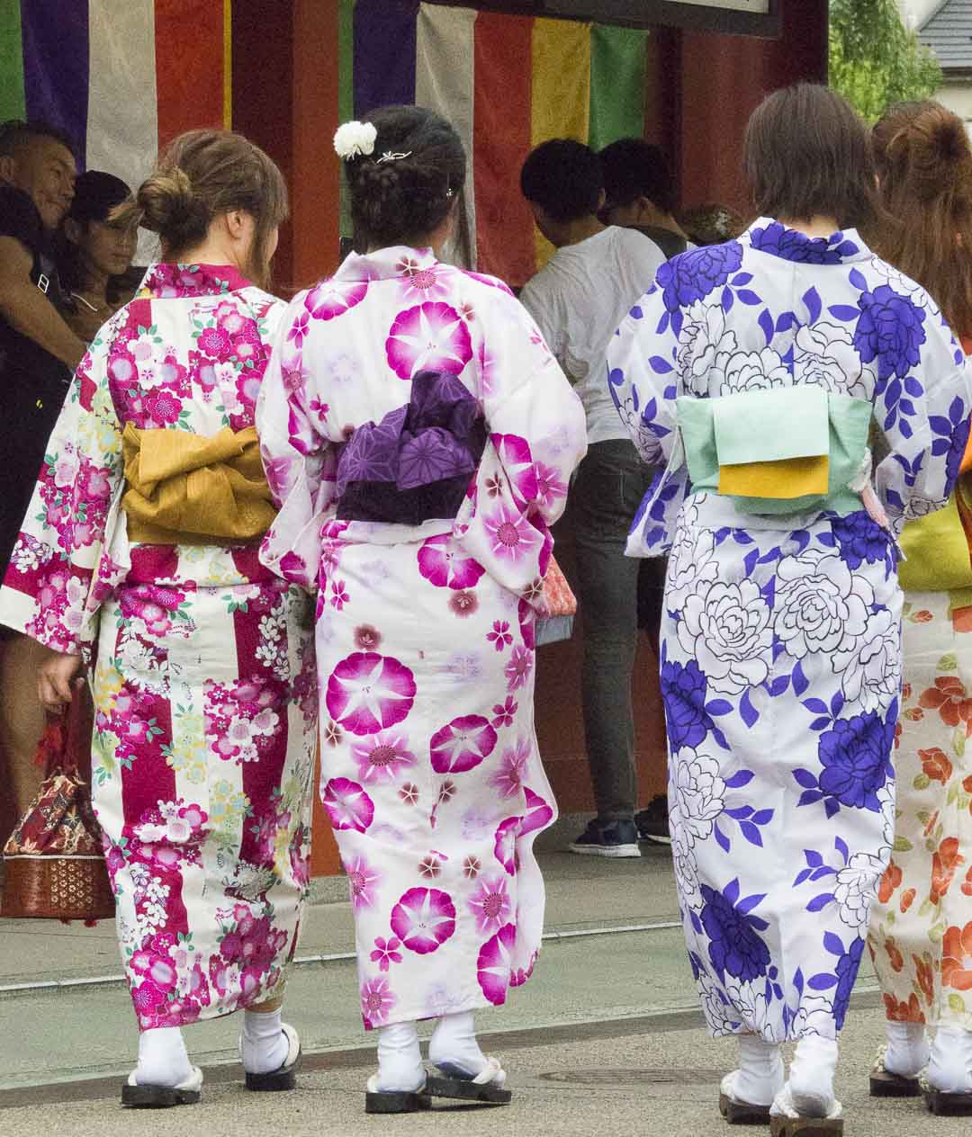 Des fleurs en tissu viendront orner les cheveux des femmes. Les hommes aussi peuvent se promener en kimono, et les enfants également, bien sûr…