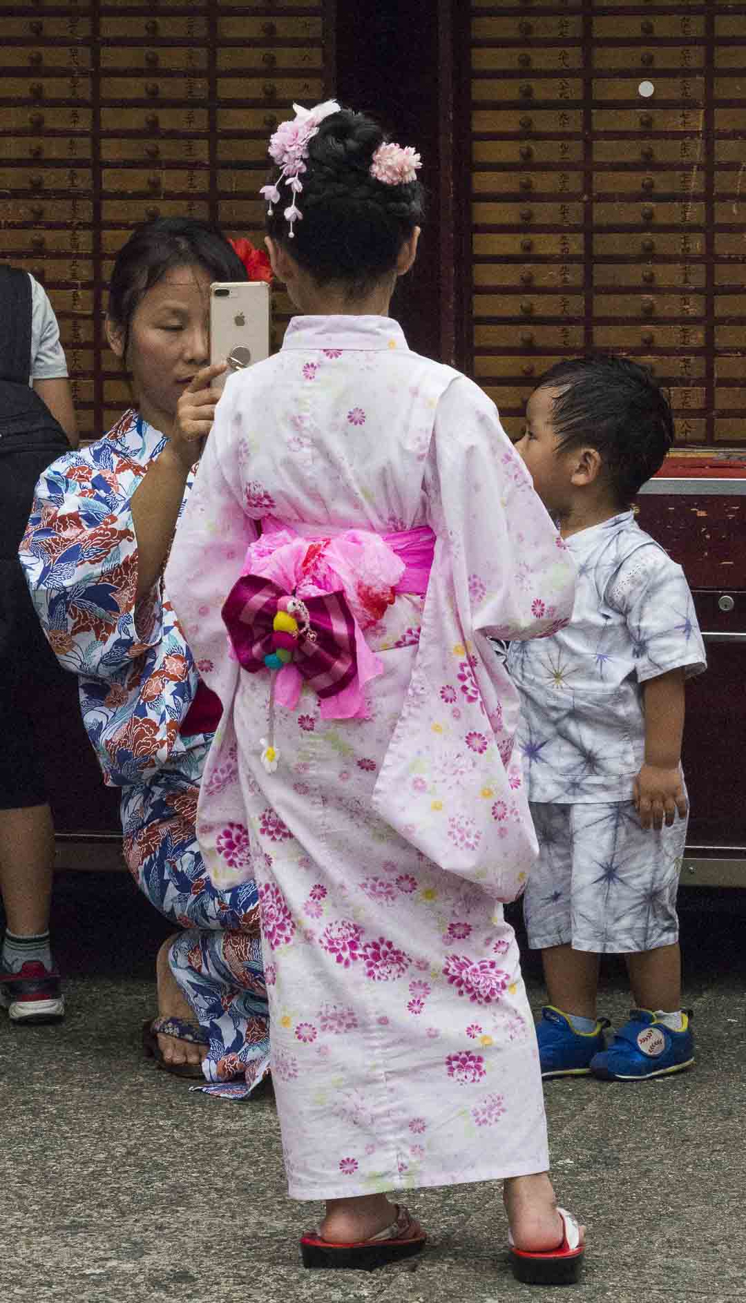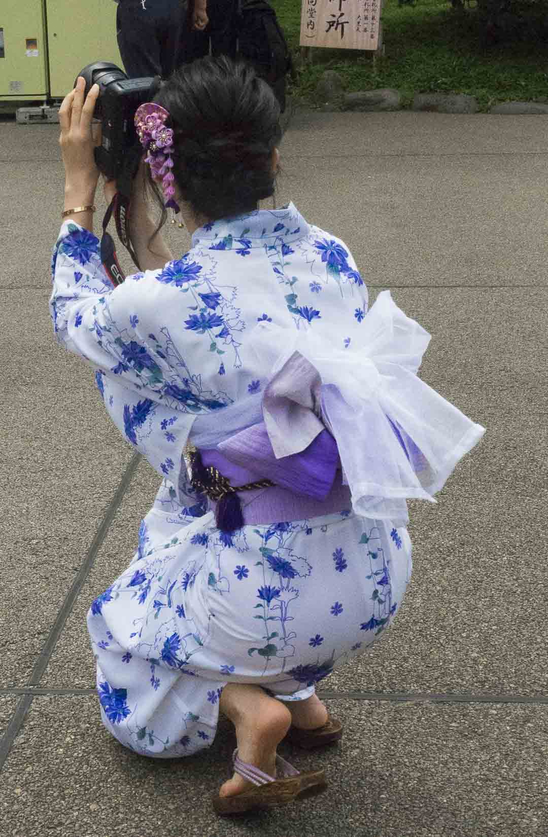 Bien souvent les personnes portant des yukata viennent au temple à plusieurs pour se prendre mutuellement en photo. Les séances de pose sont interminables et je n’ai eu aucun mal à me joindre aux séances photo, tout le monde est ravi de se faire mitrailler…